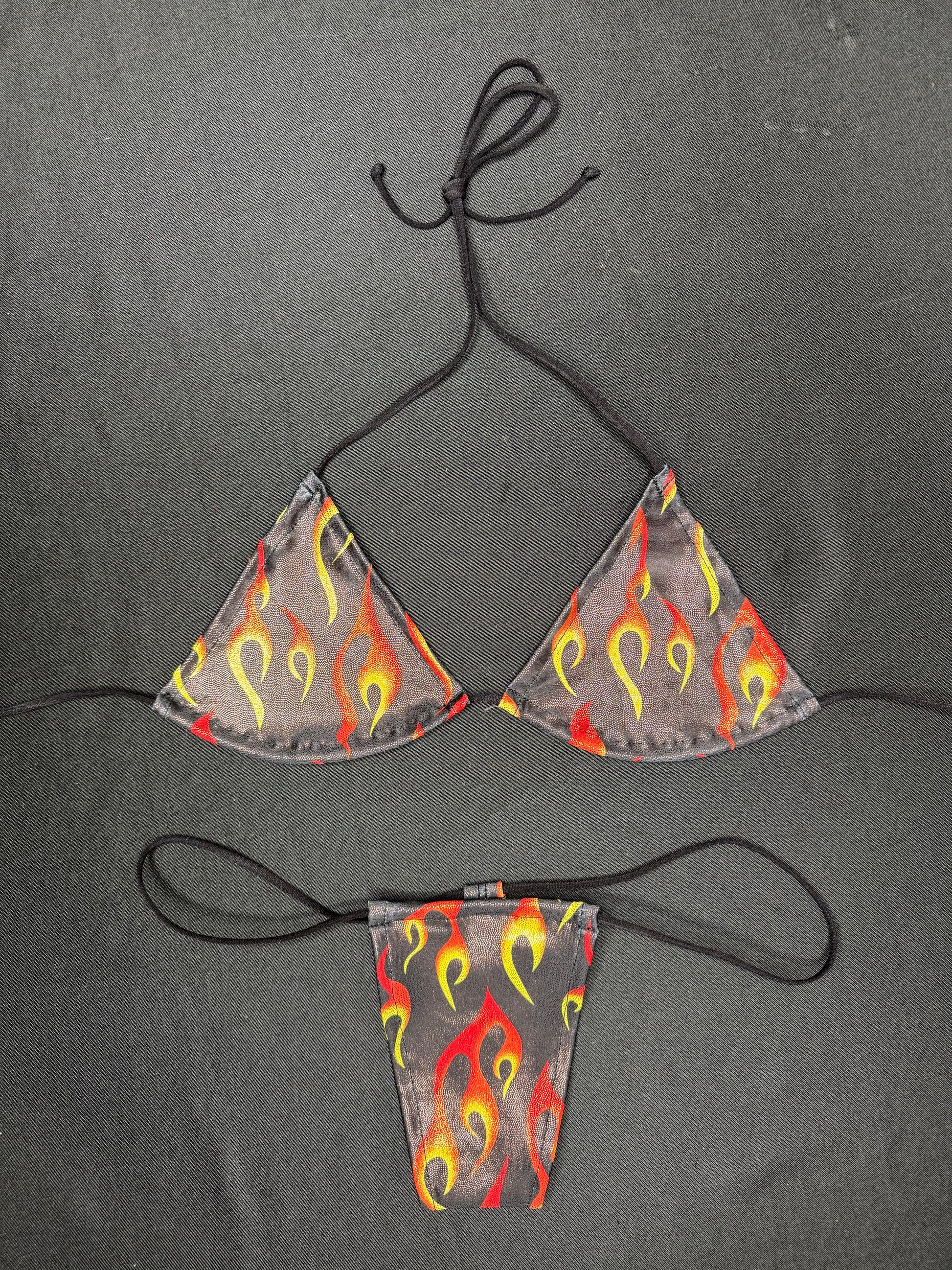 Holographic Fire Print Micro Bikini Lingerie Outfit