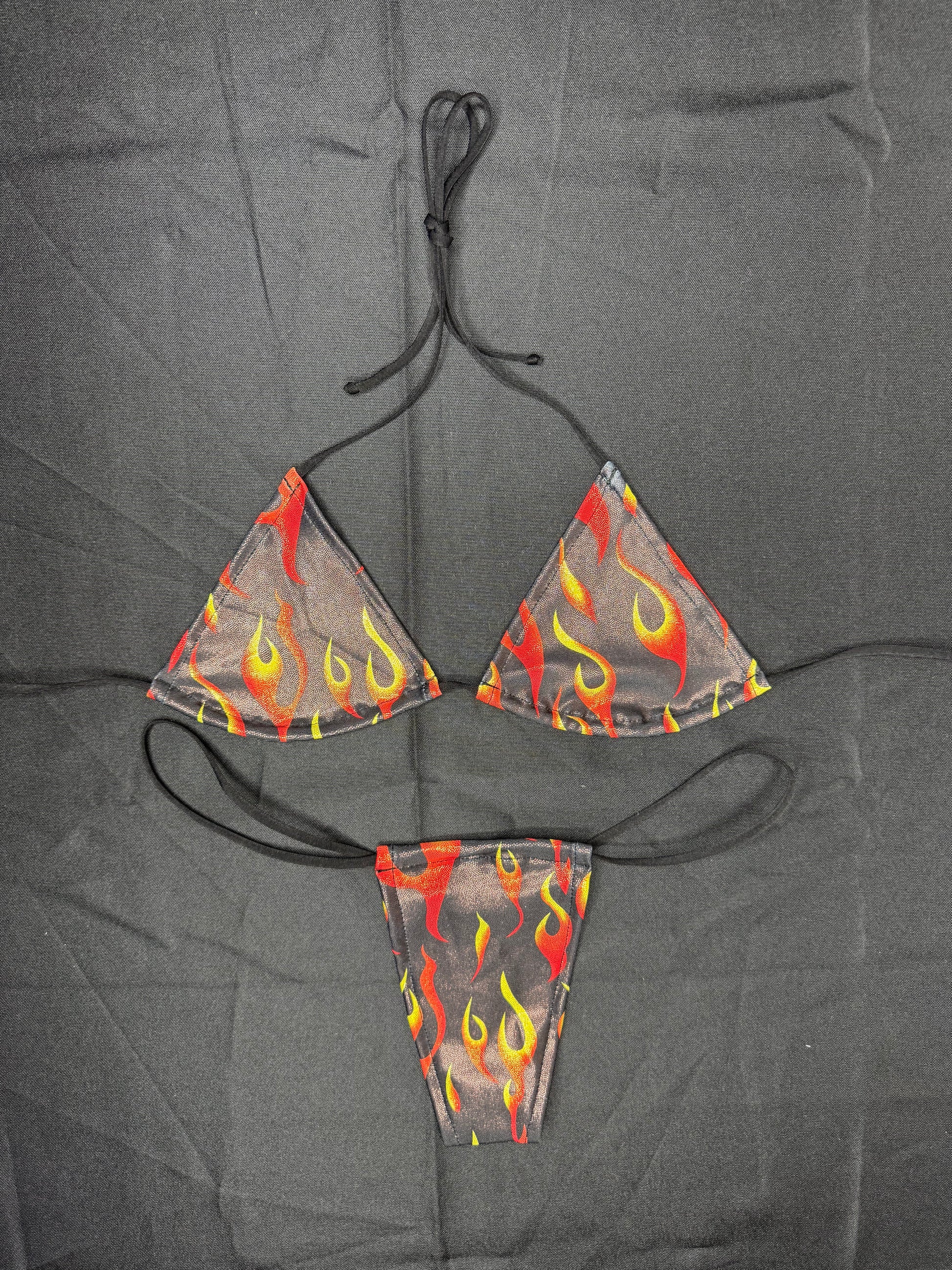 Holographic Red Flame Micro Bikini Two-Piece Lingerie Outfit