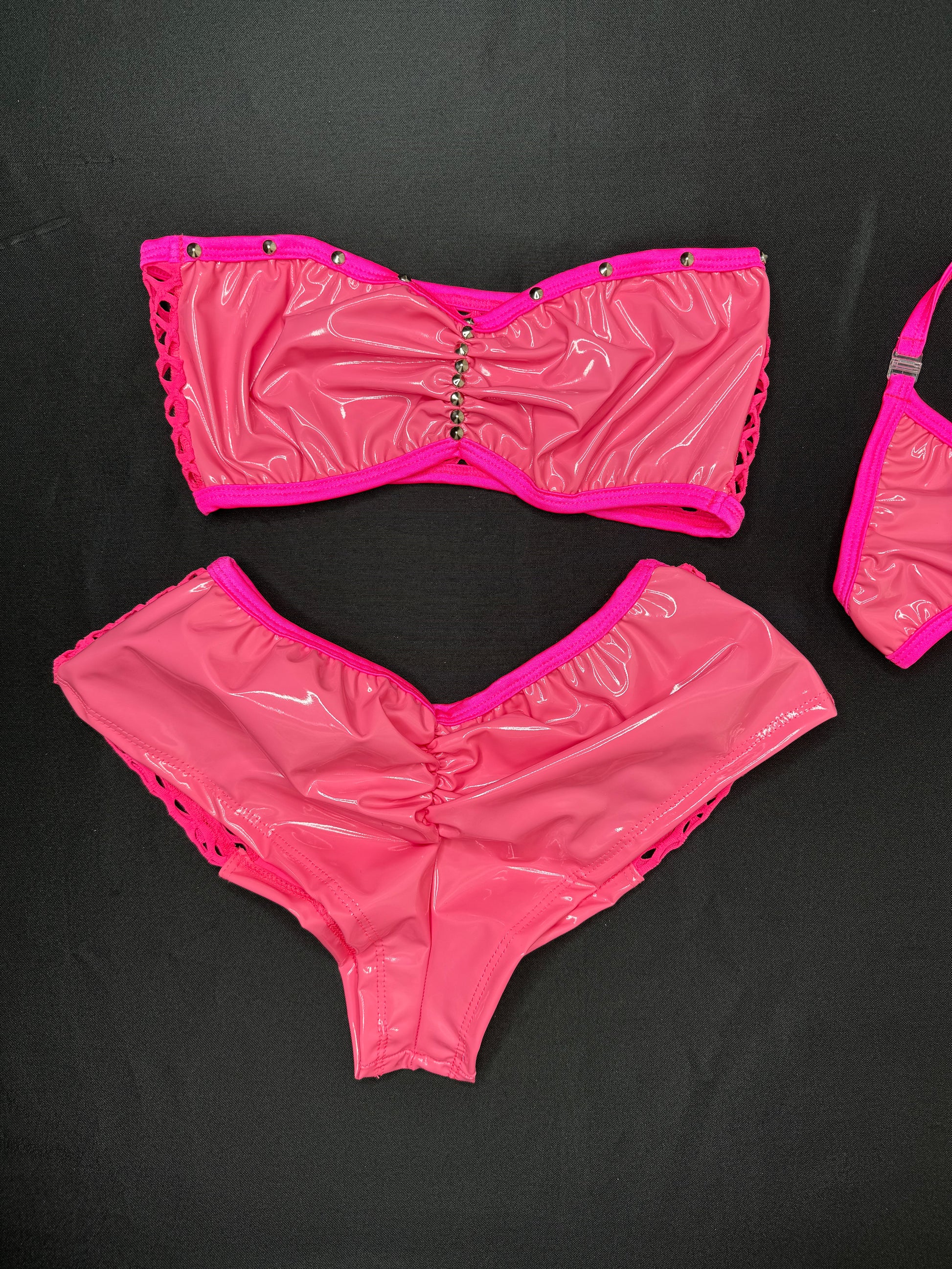 Hot Pink Latex Tube Top/Shorts Two-Piece Lingerie Outfit