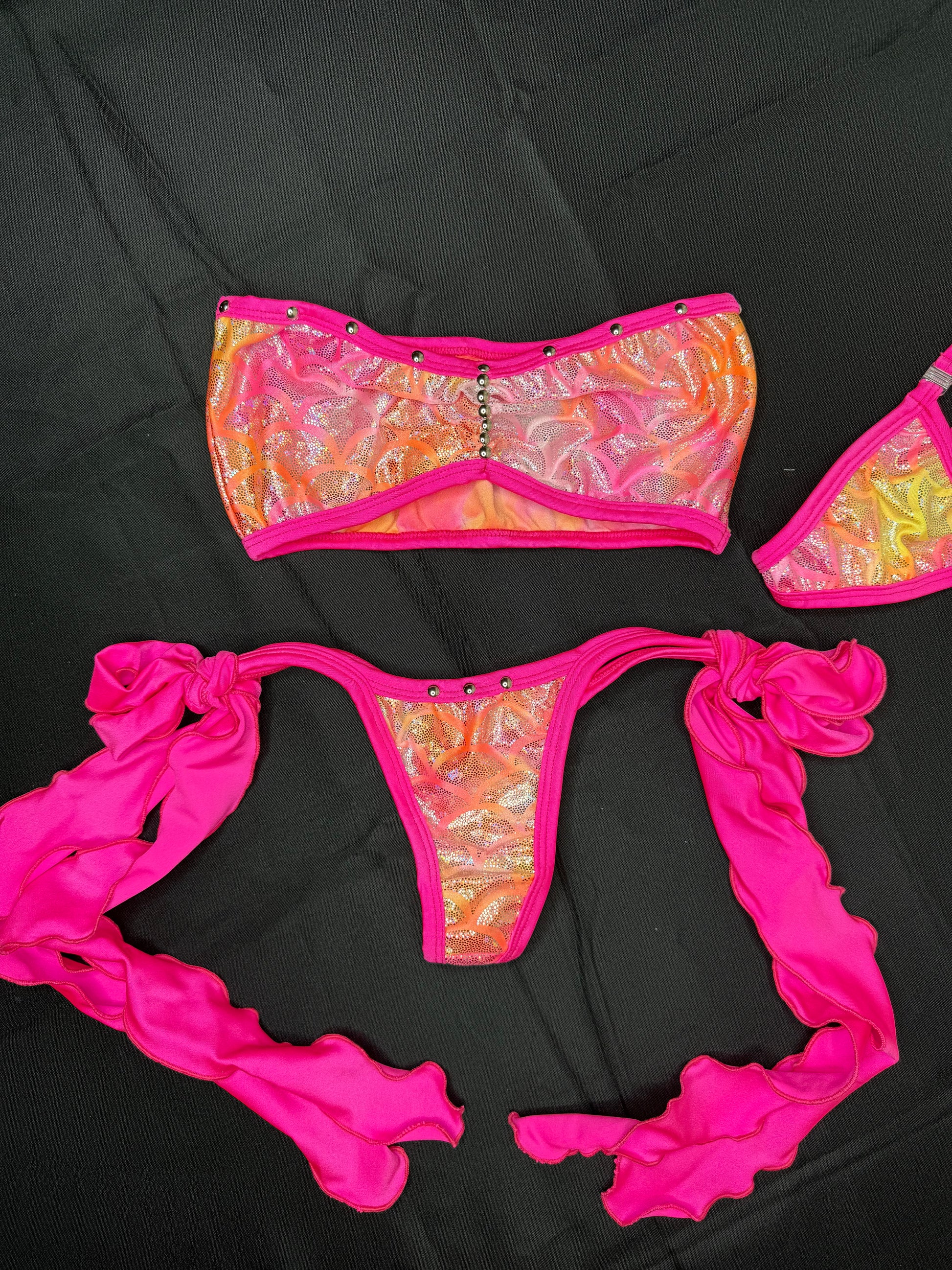 Hot Pink/Metallic Spandex Two-Piece Lingerie Outfit