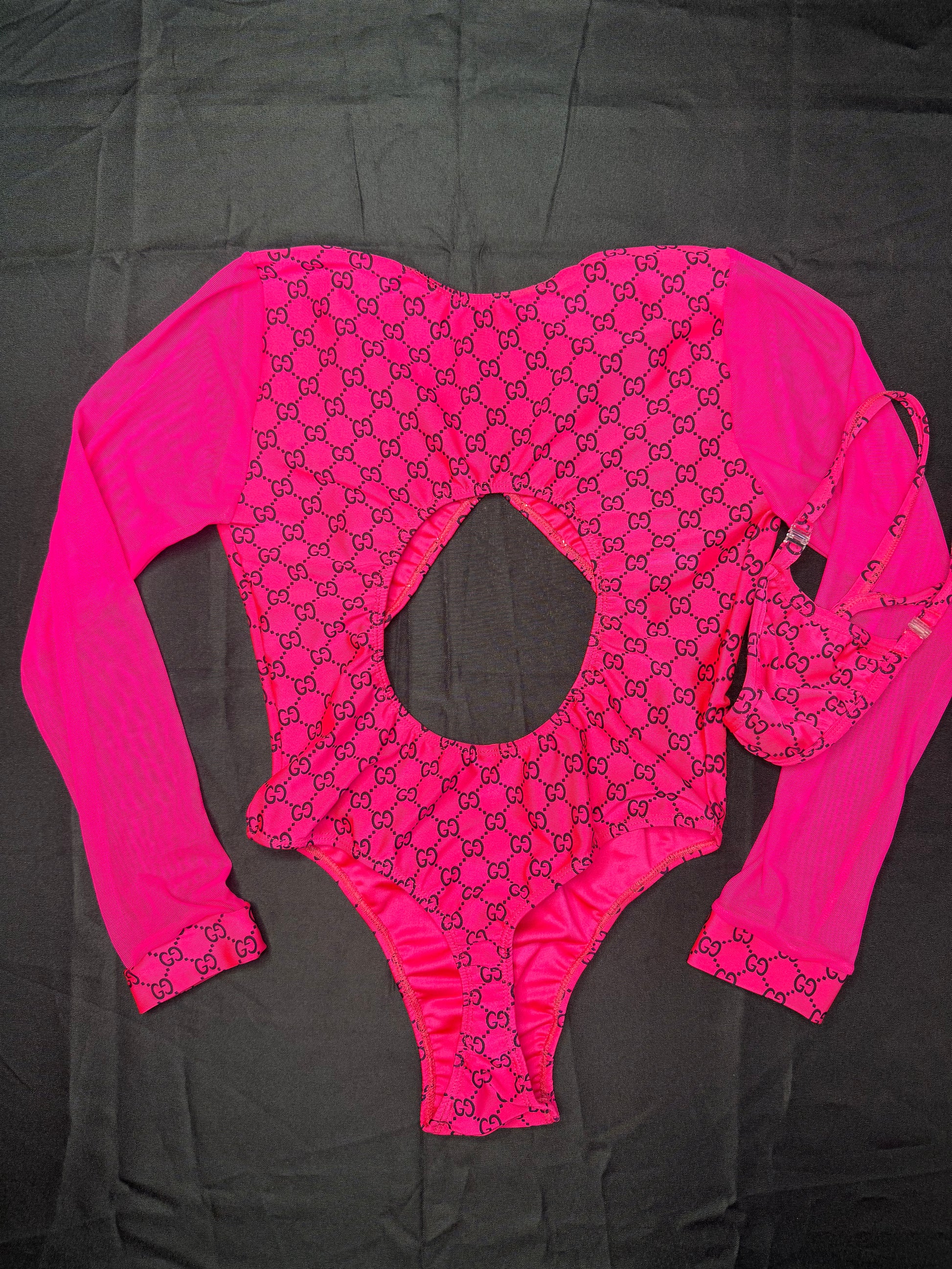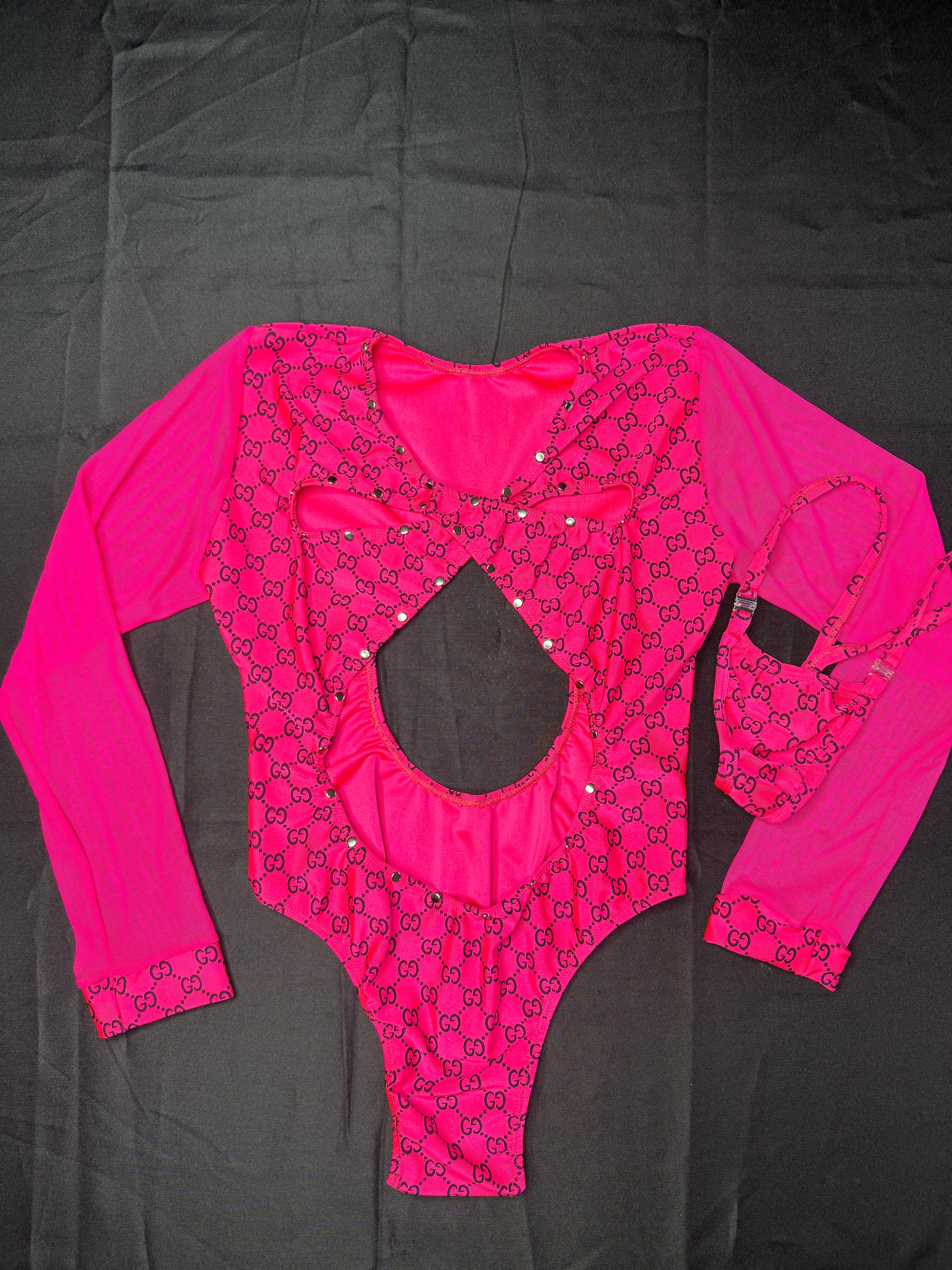 Hot Pink Spandex/Mesh Leotard Lingerie Outfit
