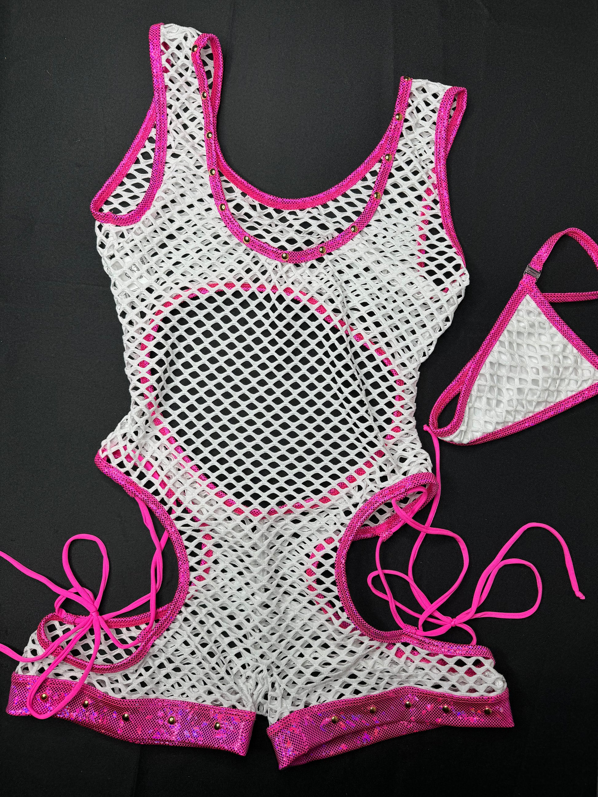 Hot Pink/White Fishnet Romper Exotic Dancer Outfit