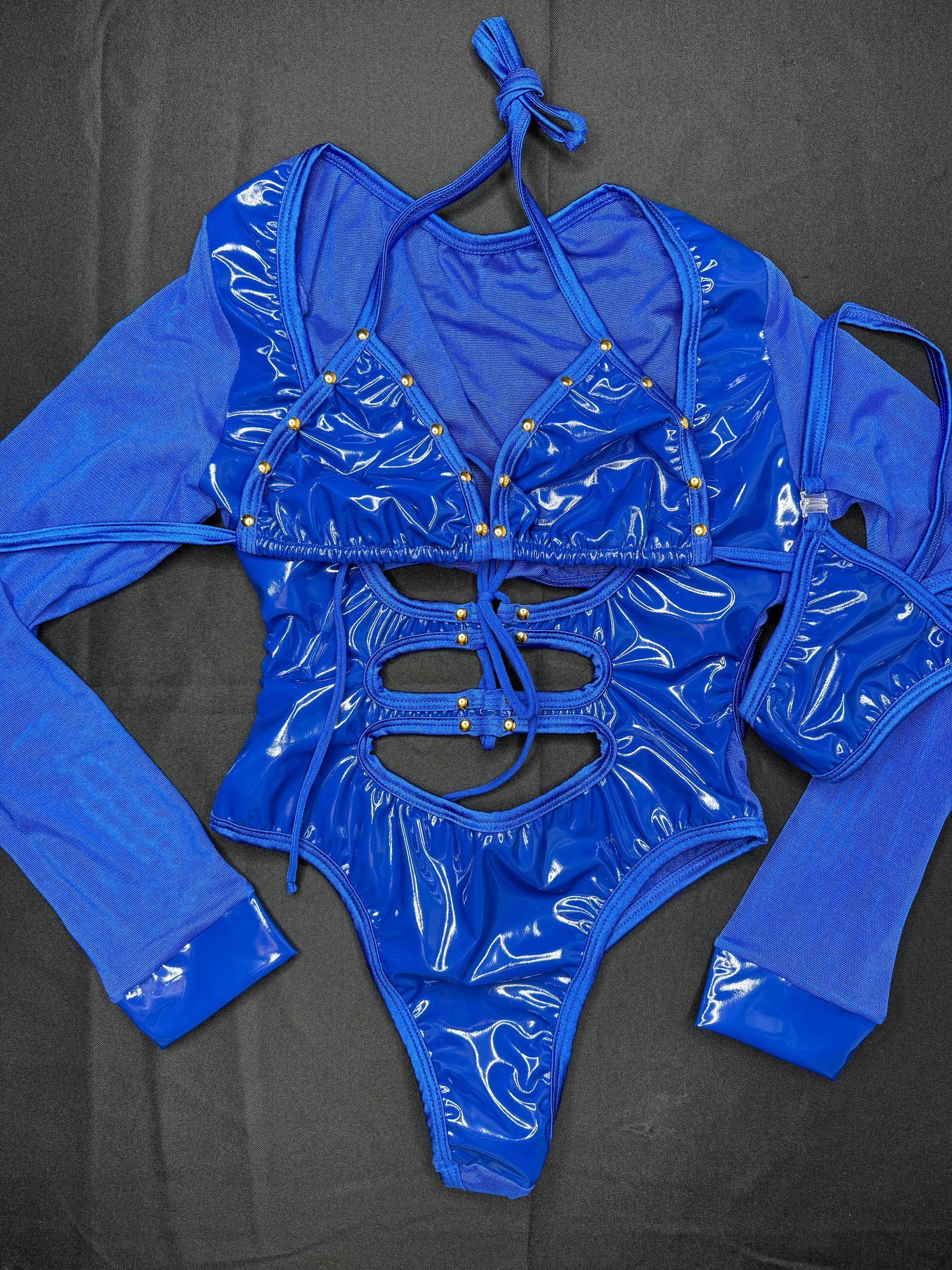 Royal Blue Latex Leotard Long Sleeve One-Piece Outfit
