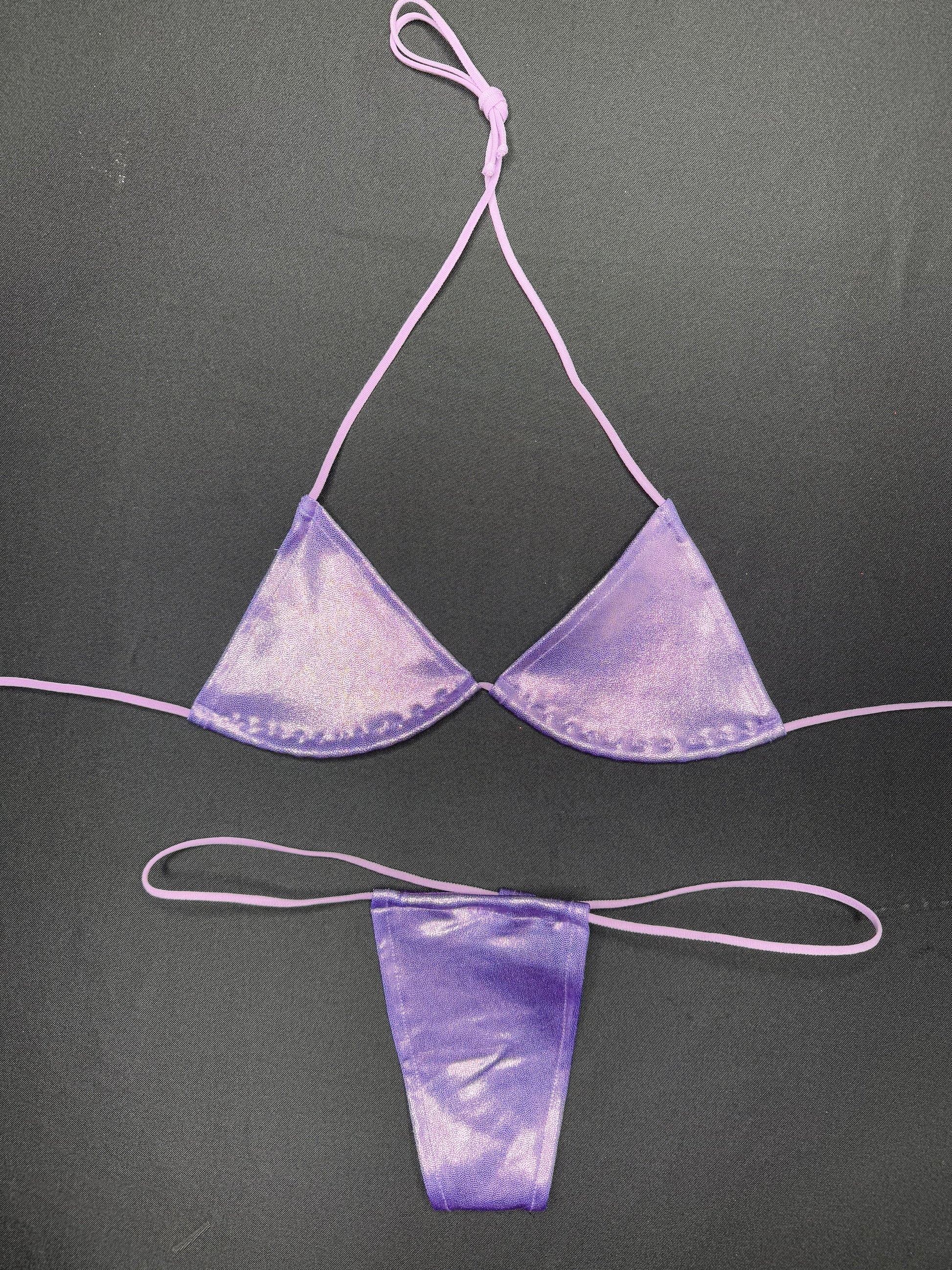 Lavender Two-Piece Micro Bikini Lingerie Outfit