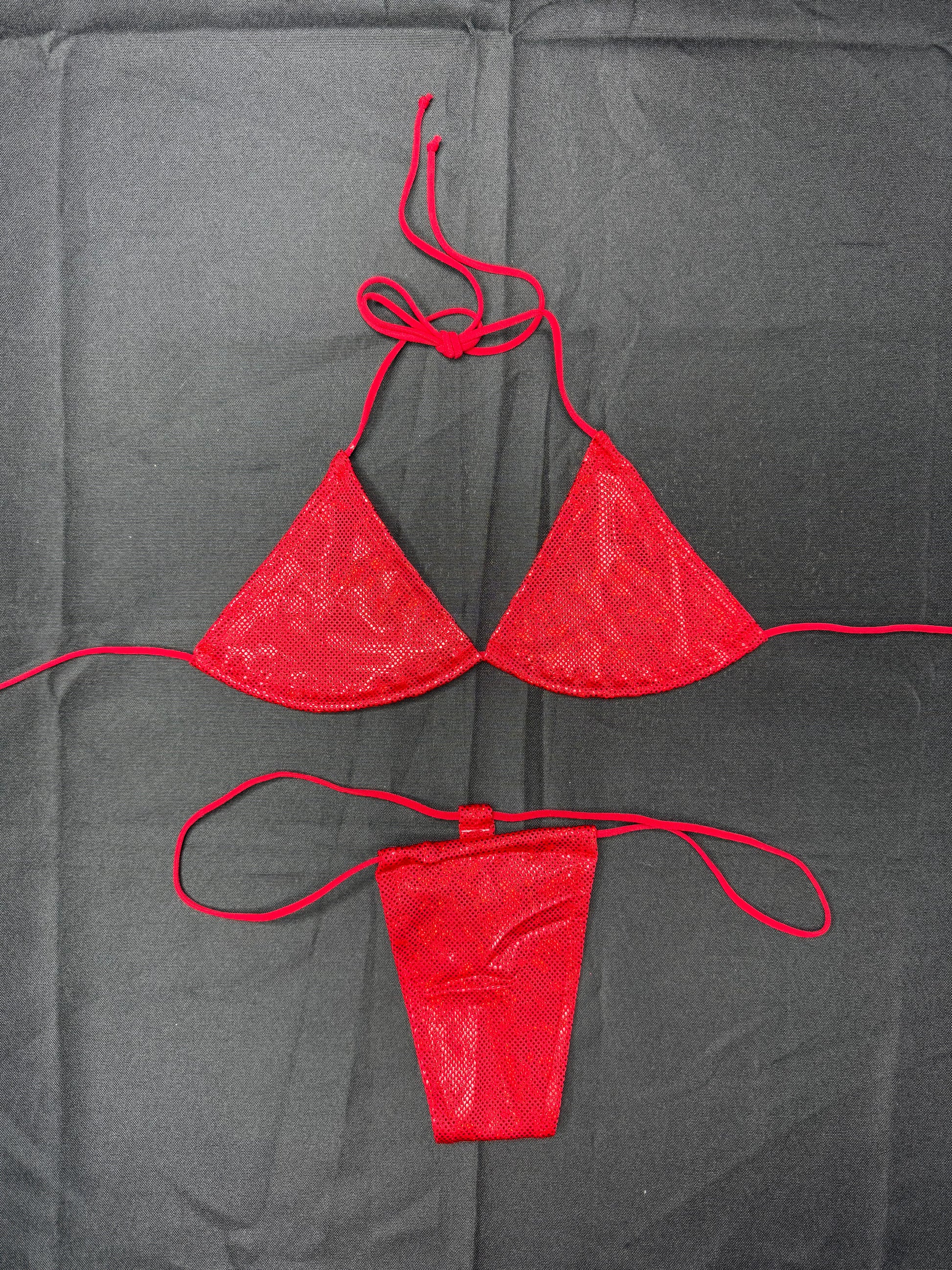 Matrix Red Spandex Two-Piece Micro Bikini Lingerie Outfit