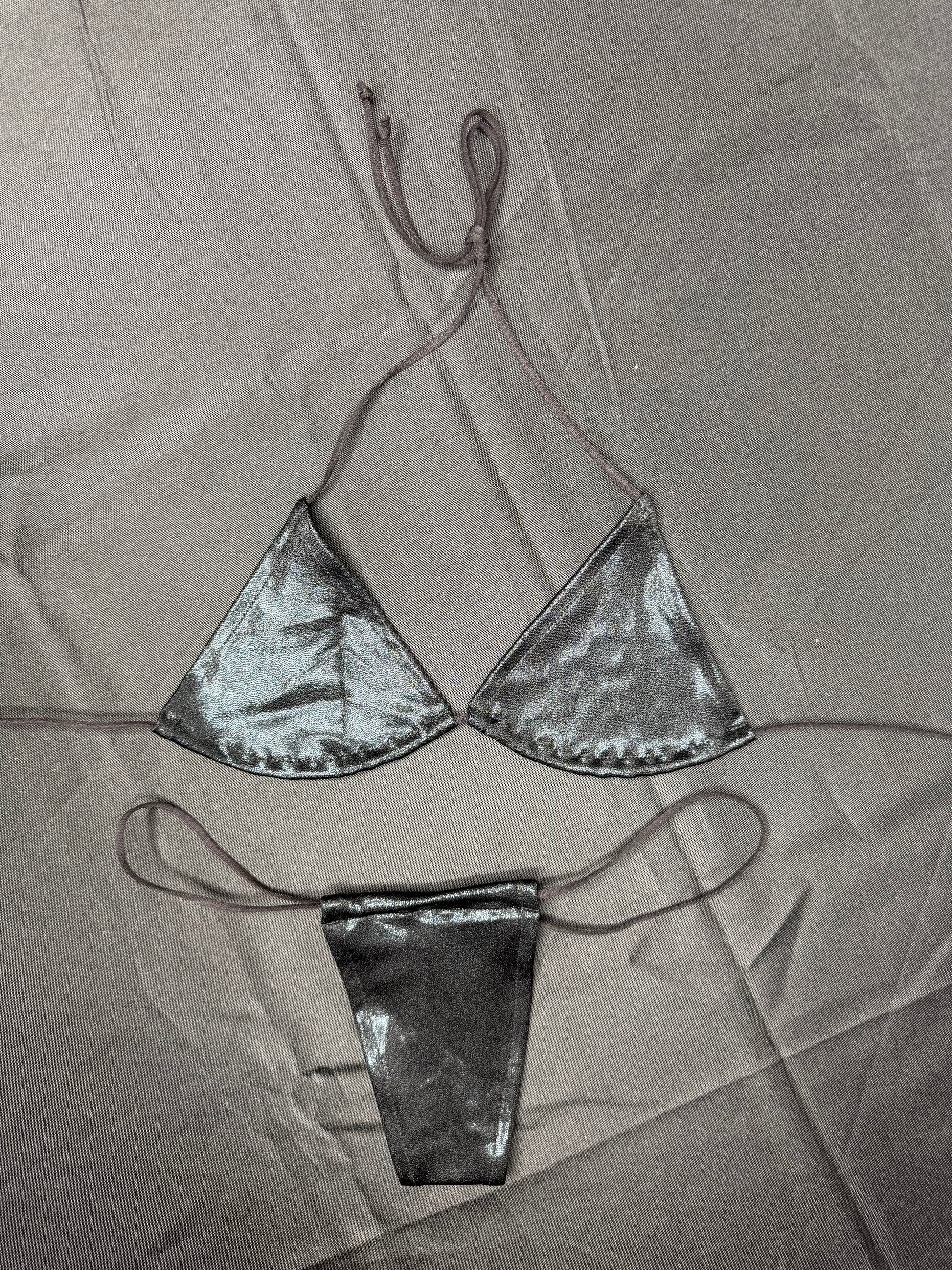 Metallic Black Spandex Micro Bikini Lingerie Outfit