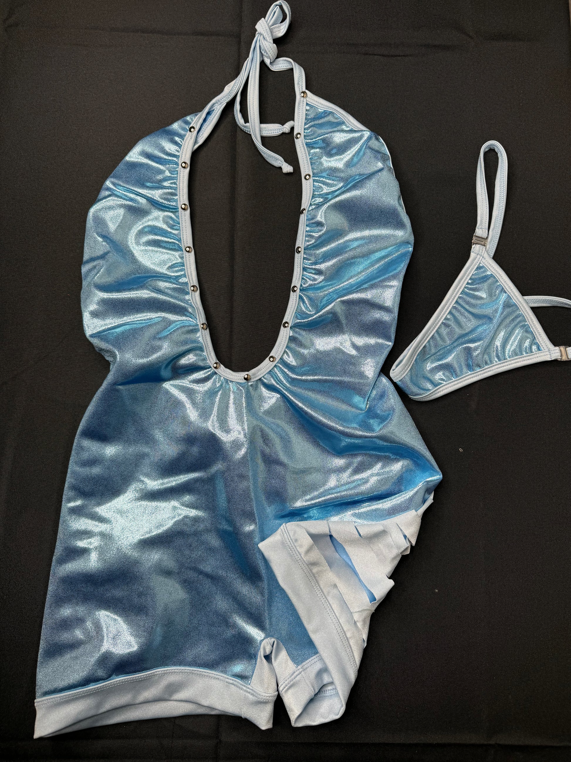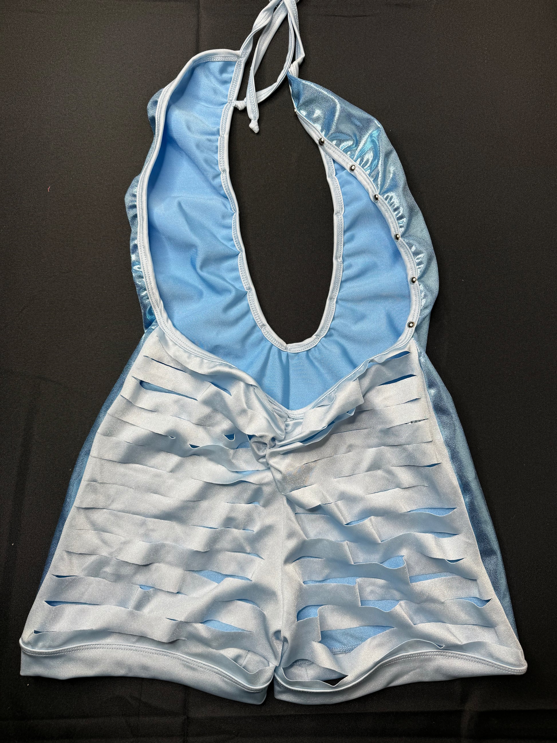 Metallic Blue/Baby Blue Ripped Back One-Piece Stripper Outfit