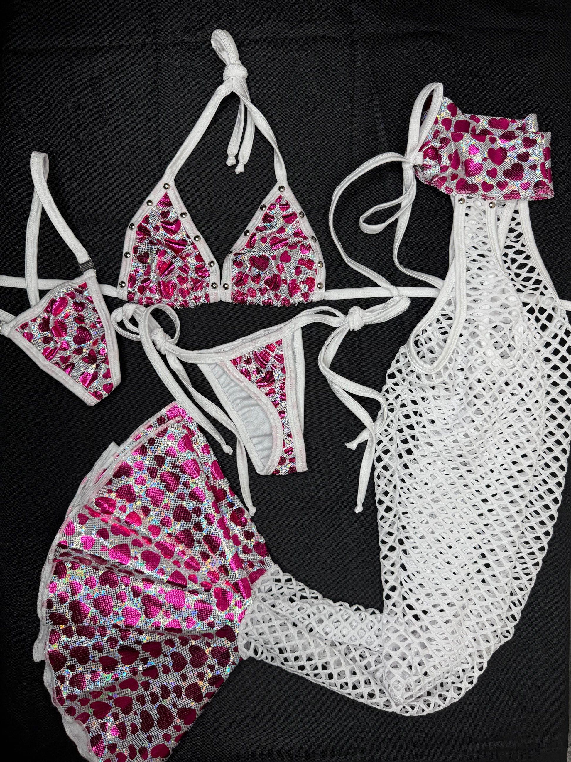 Metallic Heart Spandex Bikini Top/Side Tie Bikini Chaps Leg Lingerie Outfit