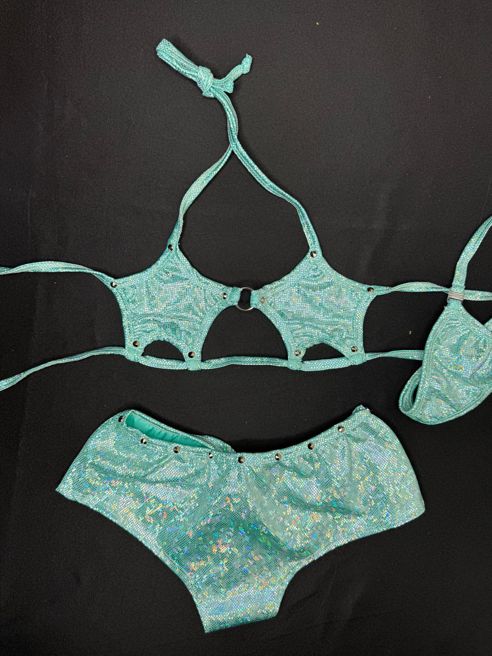 Metallic Mint Star Bikini Top/Shorts Two-Piece Lingerie Outfit