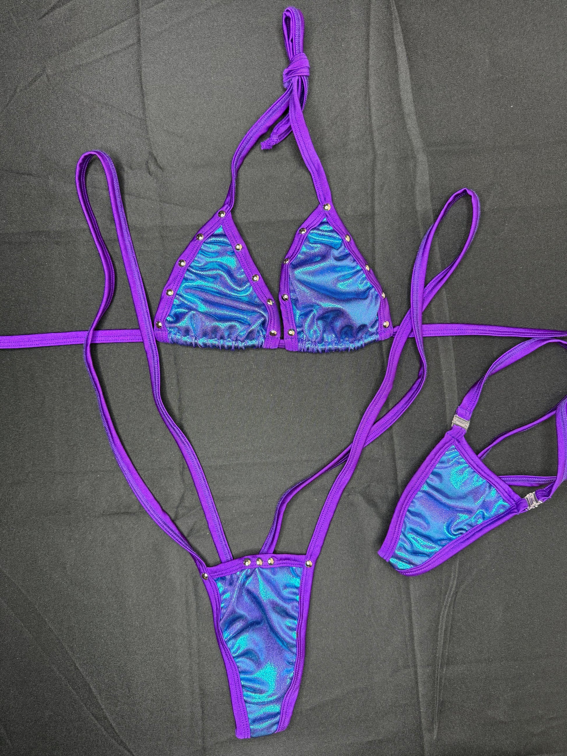 Metallic Purple Sling-Shot One-Piece Lingerie Outfit