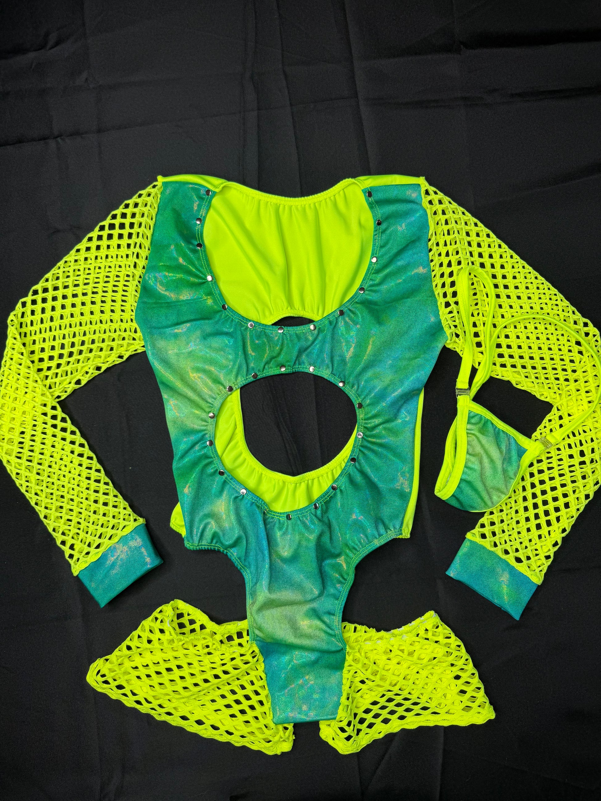 Neon Yellow/Metallic Yellow/Green Romper Lingerie Outfit