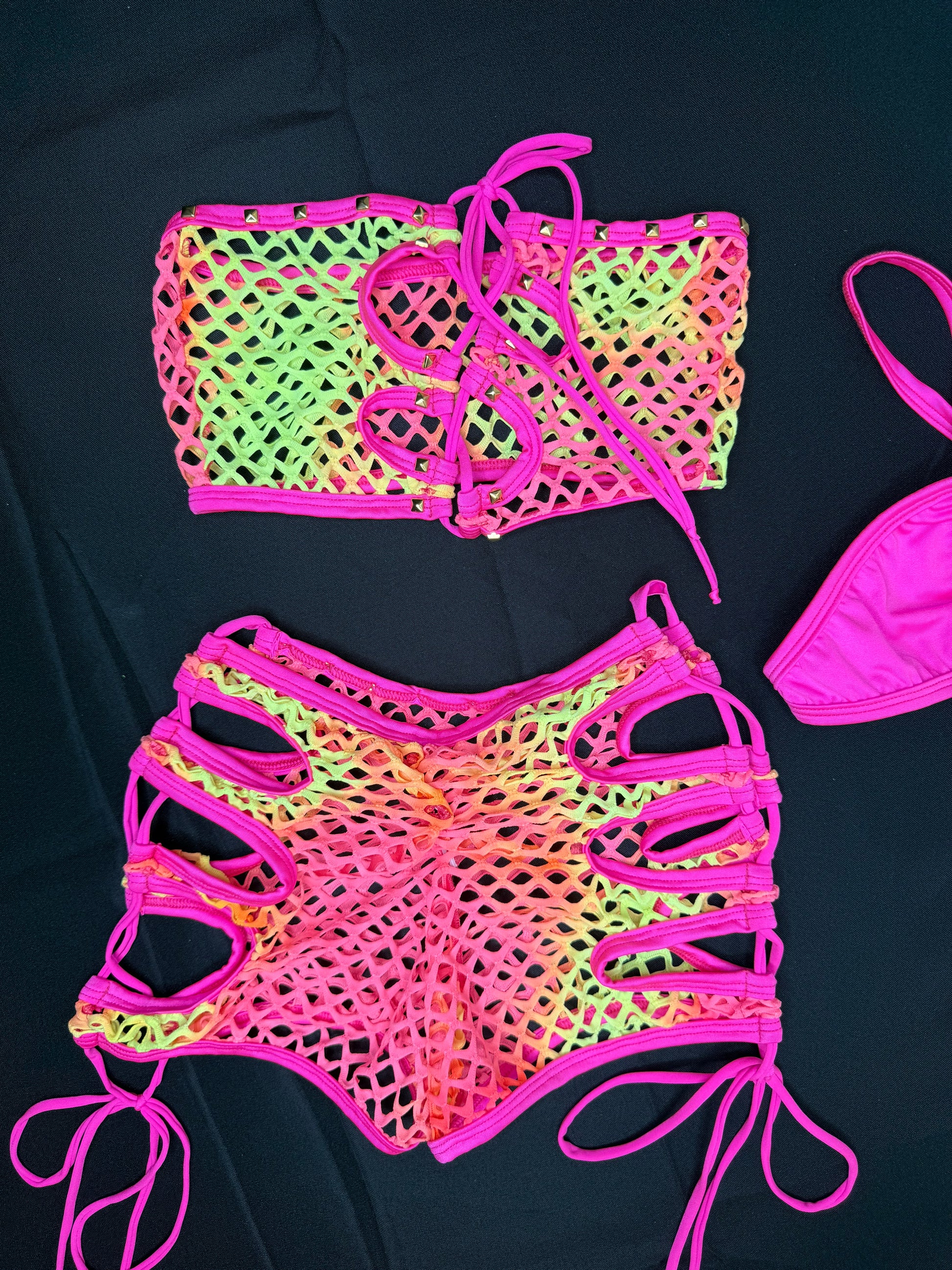 Ombré Fishnet Tube Top/Shorts Two-Piece Lingerie Outfit