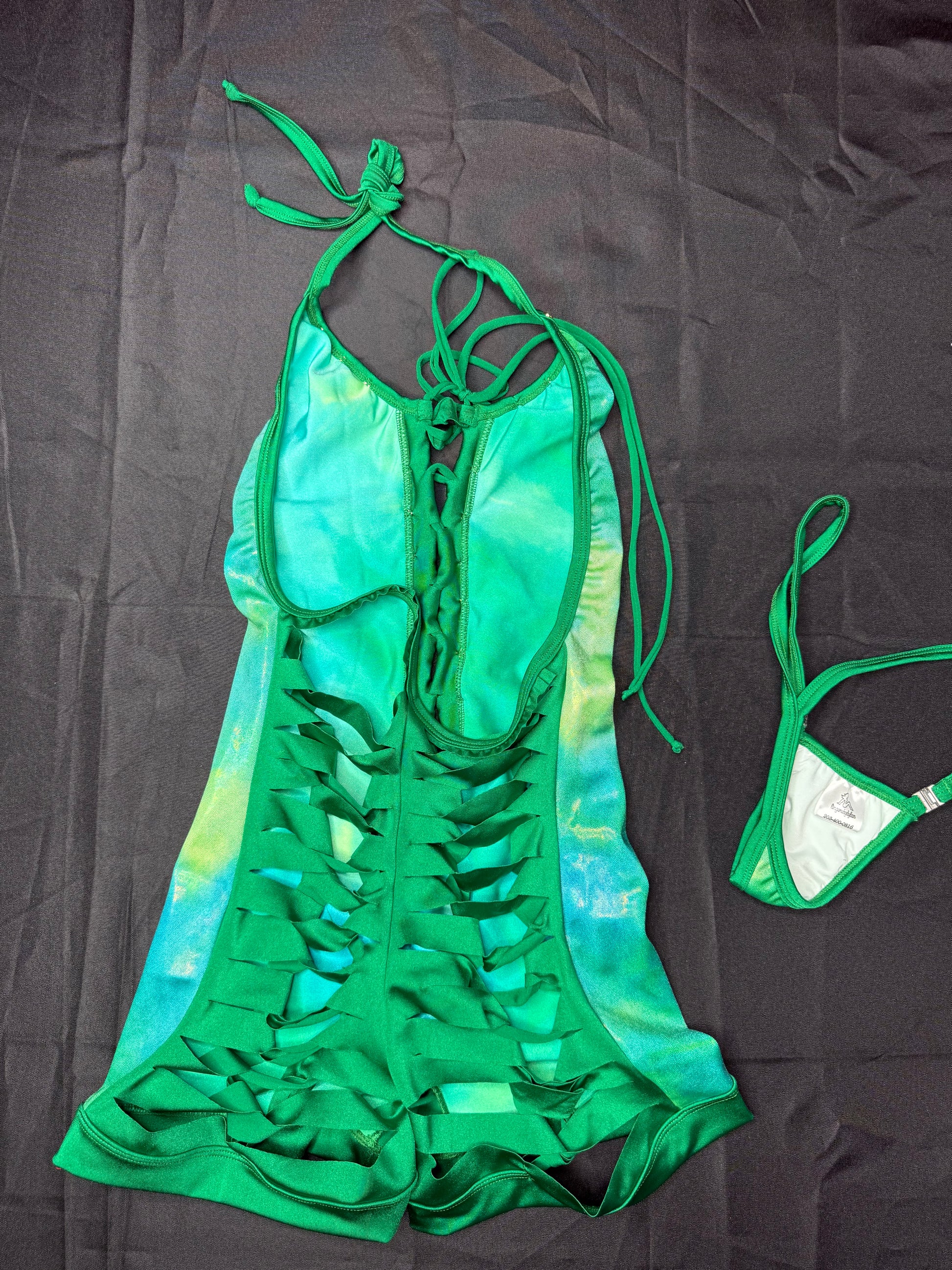 Ombré Green/Green Spandex Ripped Back One-Piece Lingerie Outfit