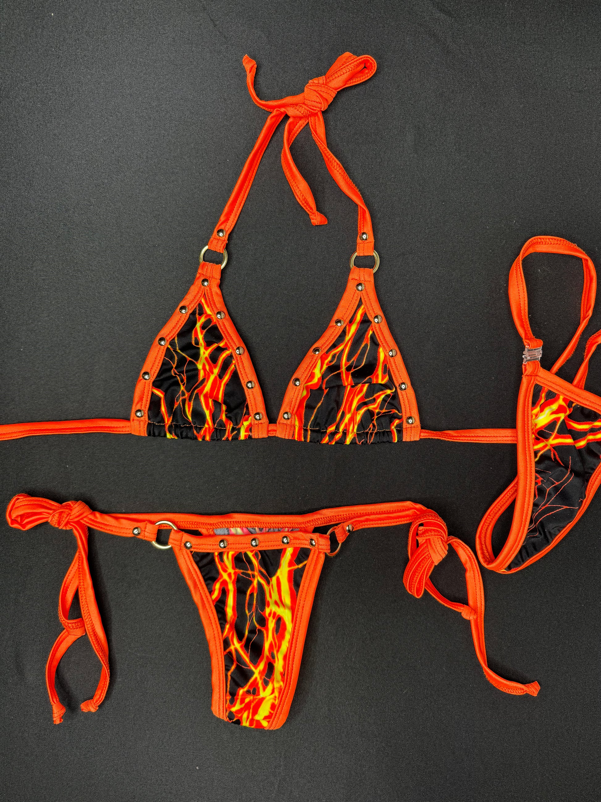 Orange/Black Lightning Two-Piece Bikini Lingerie Outfit