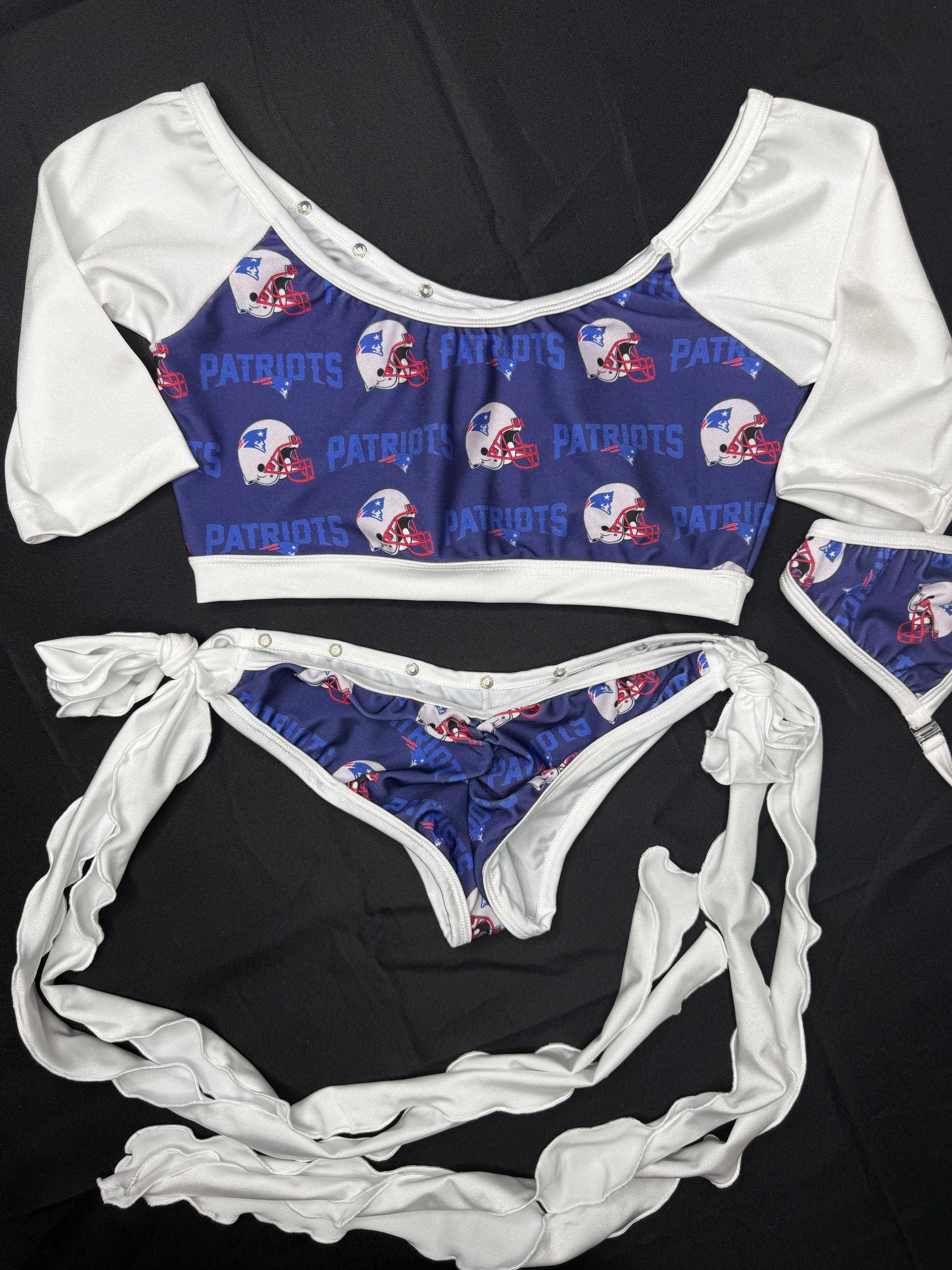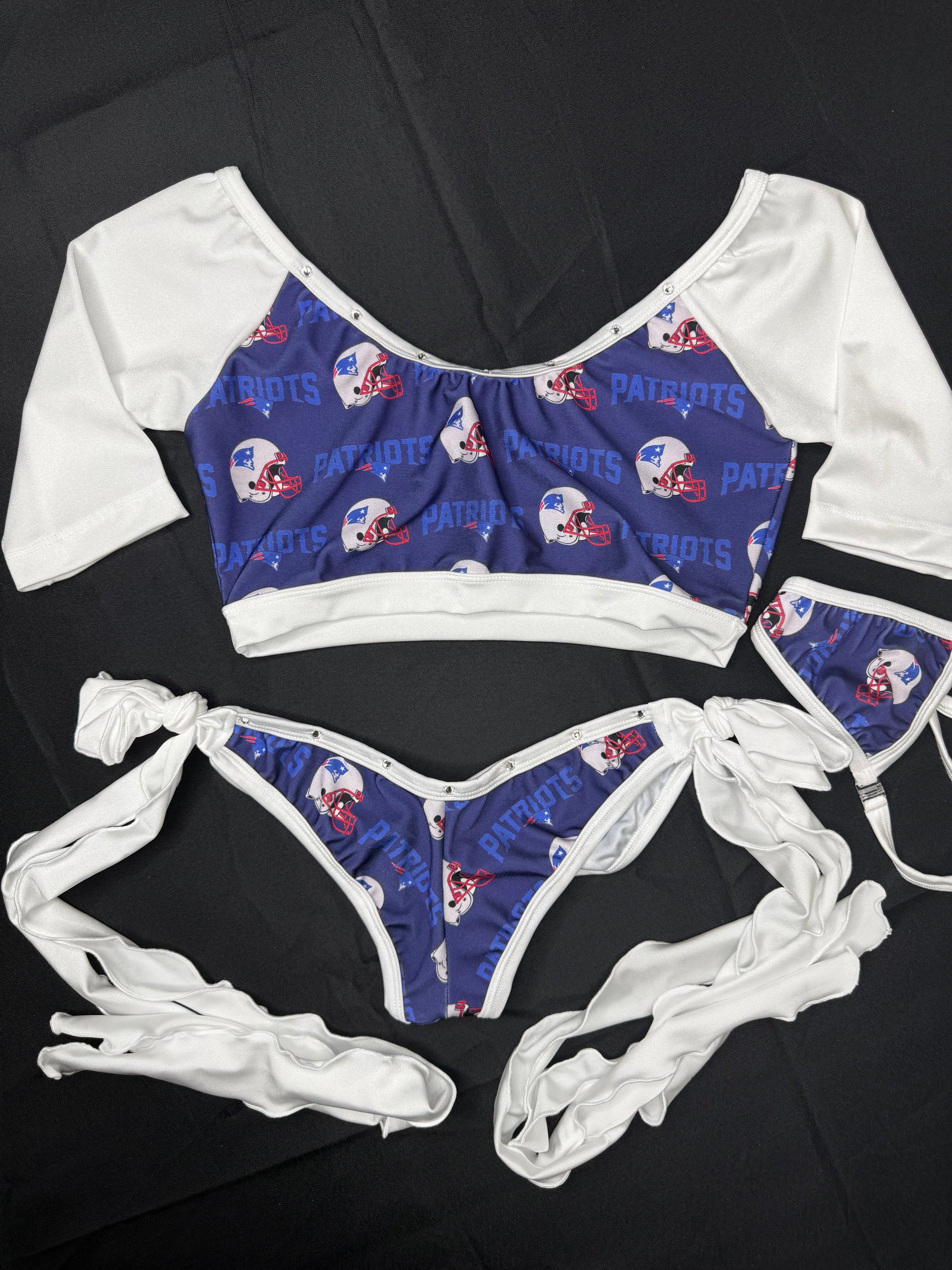 Patriots Print/White Spandex Short Sleeve Top/Bikini Bottoms Two-Piece Lingerie Outfit
