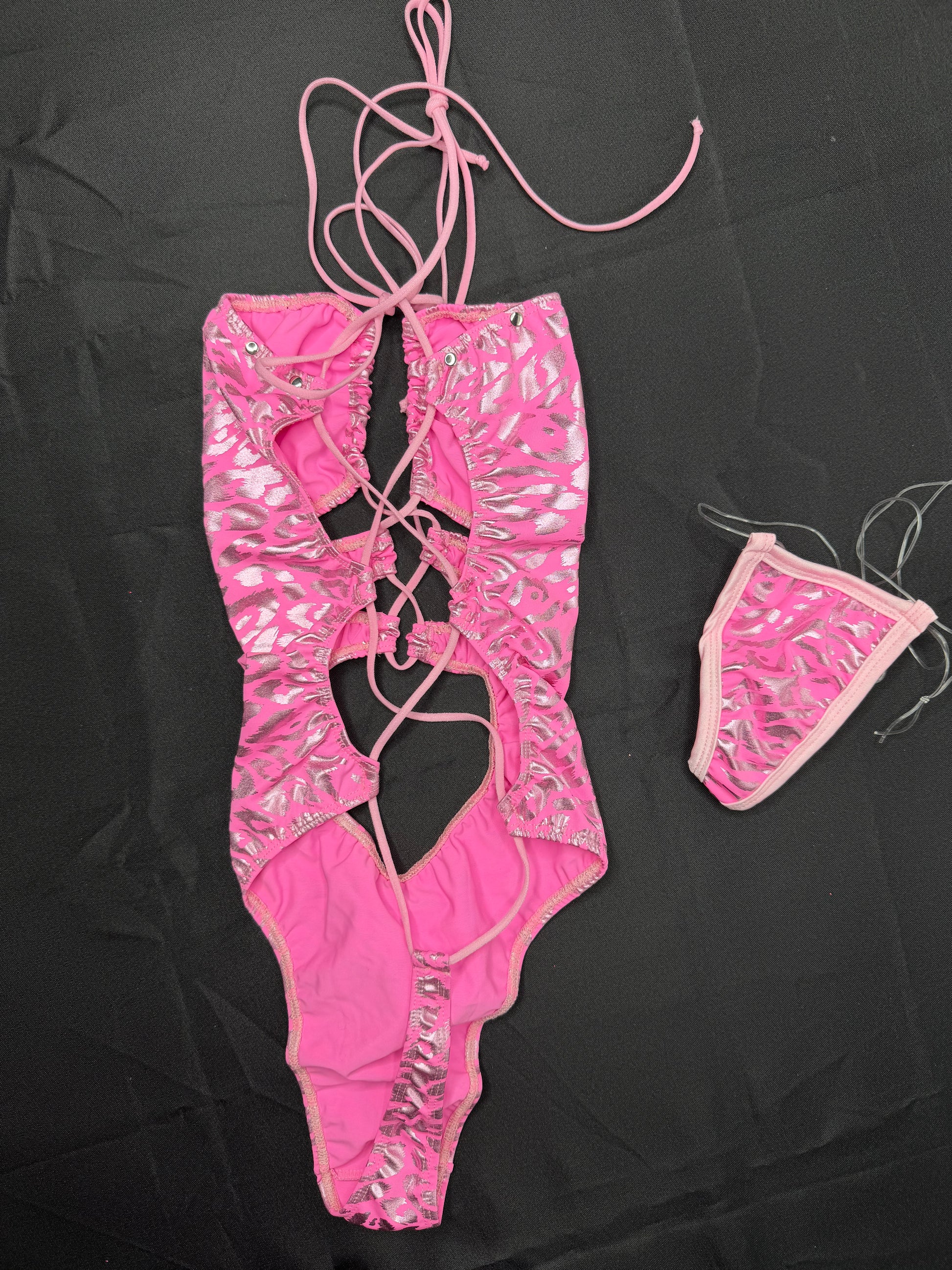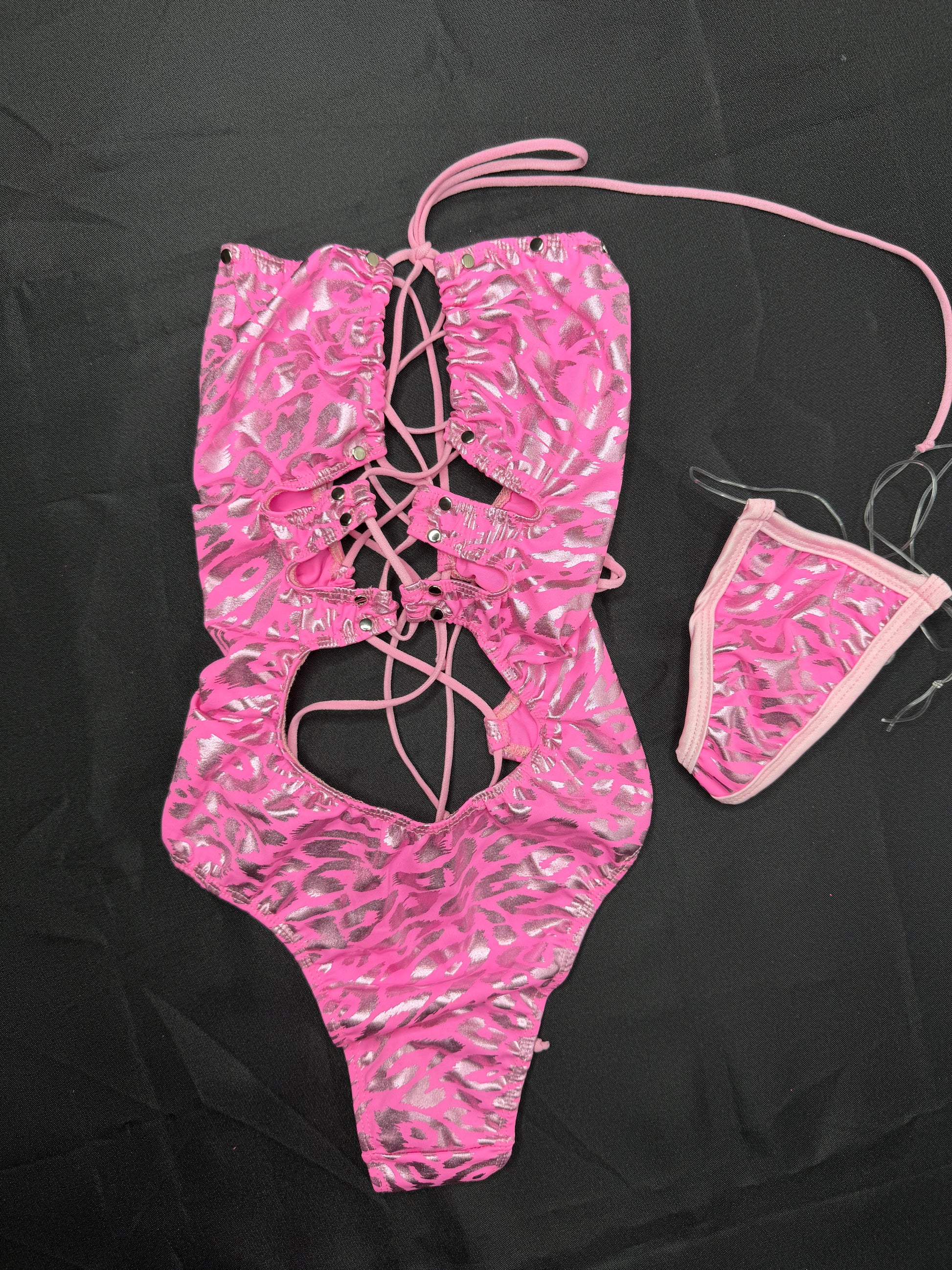 Pink Cheetah Animal Print One-Piece Lingerie Outfit