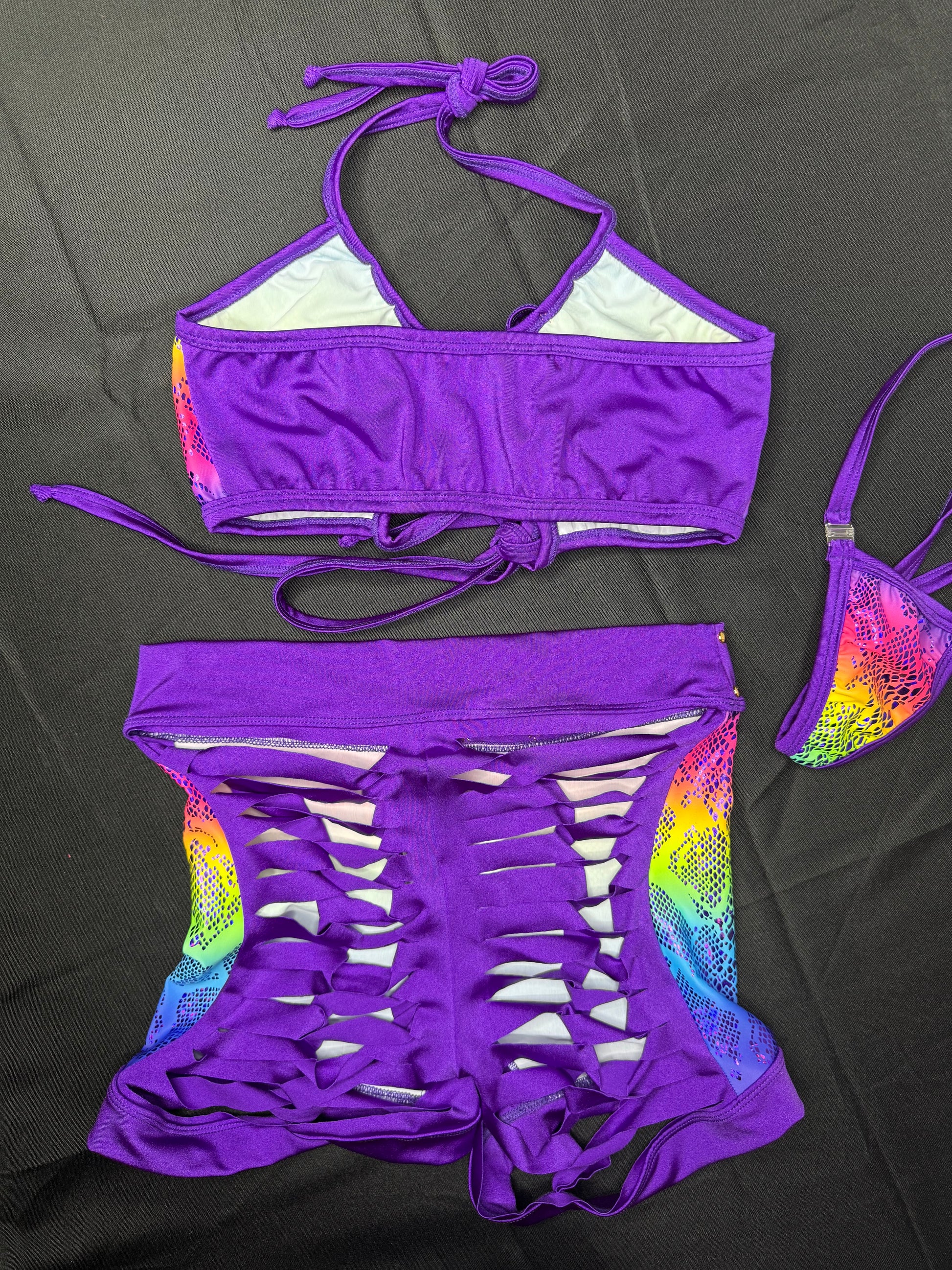 Rainbow Animal Print Sports Bra/Ripped Back Shorts Two-Piece Lingerie Outfit