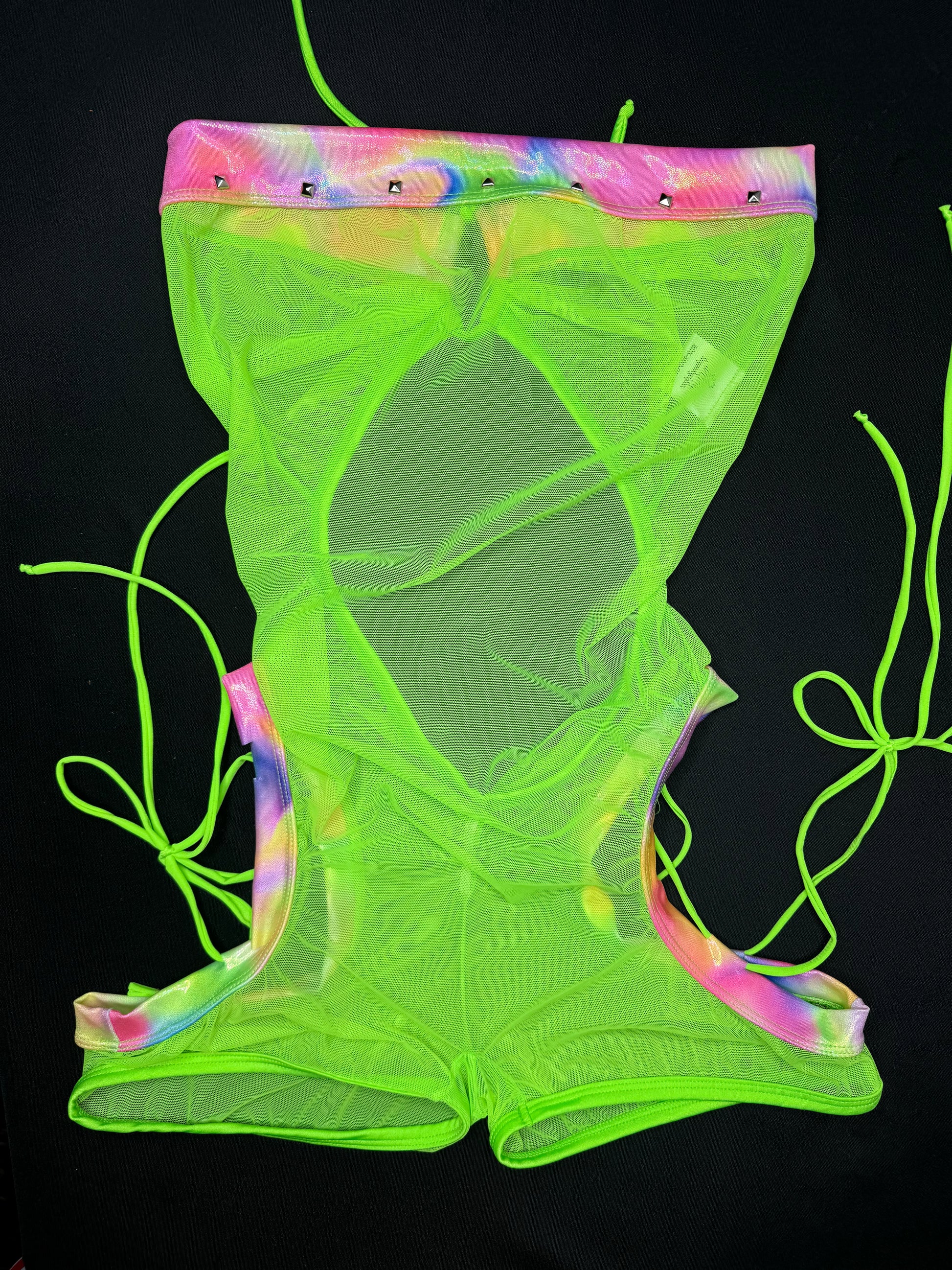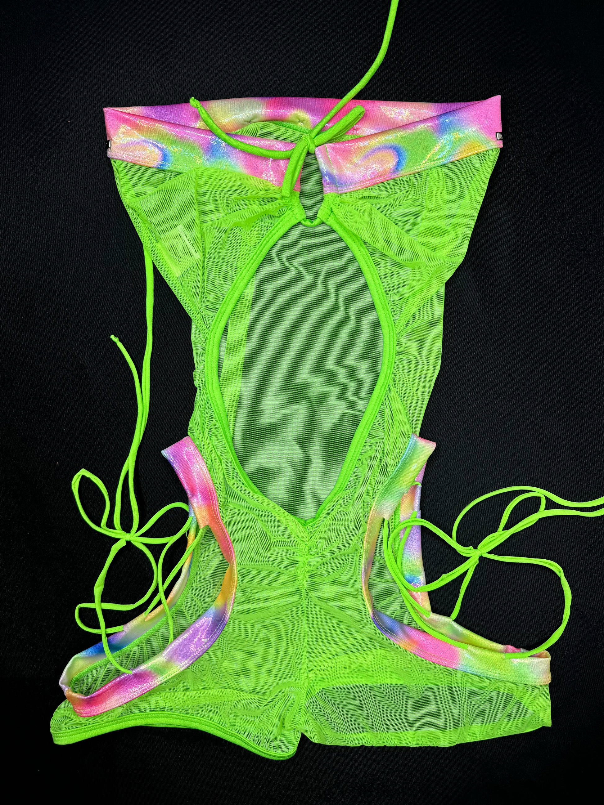 Rainbow Spandex/Neon Mesh One-Piece Lingerie Outfit with Cheekie Thong Lingerie Outfit