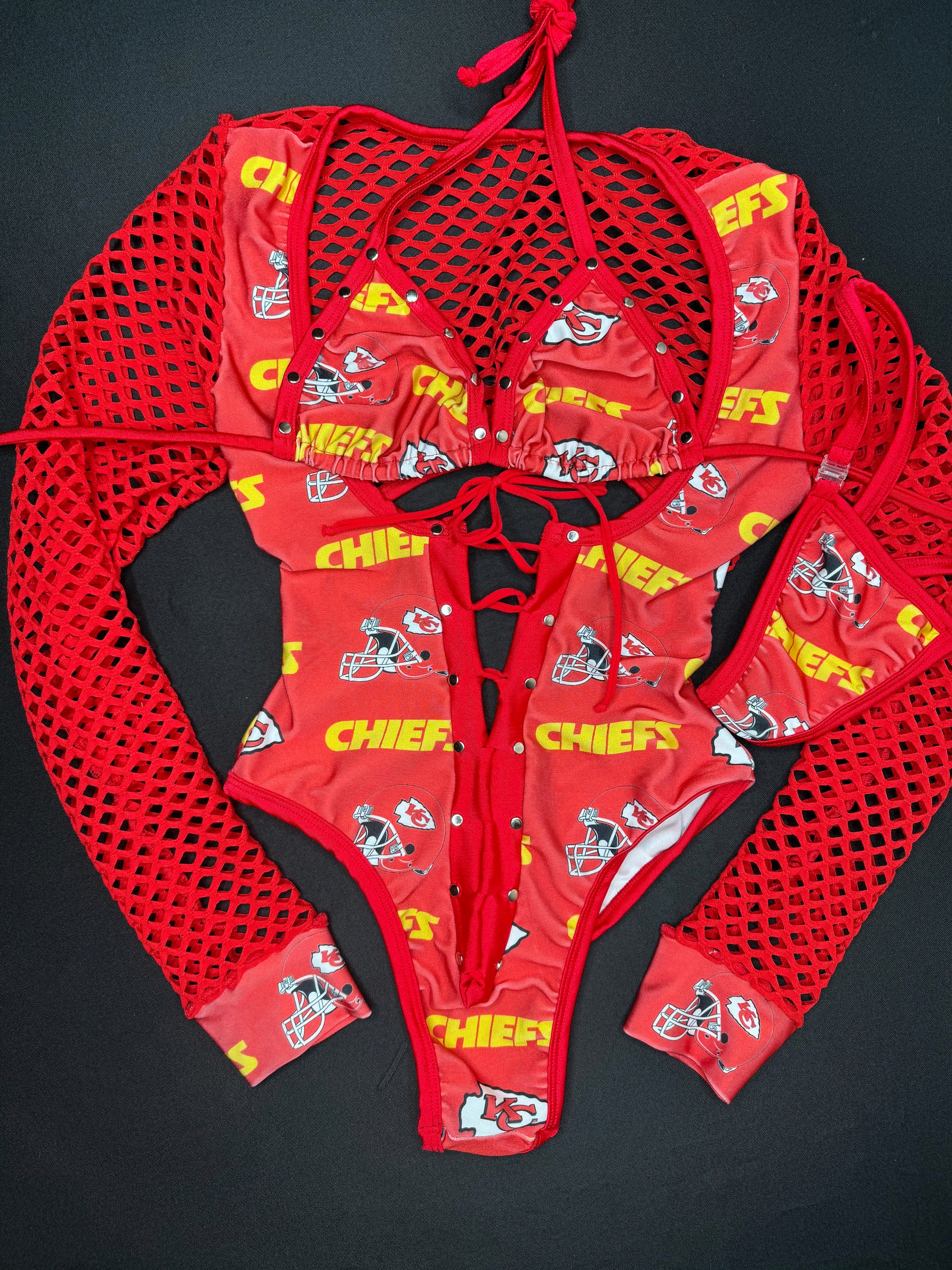 Red Chiefs One-Piece Bikini Top/Leotard Bartender Lingerie Outfit