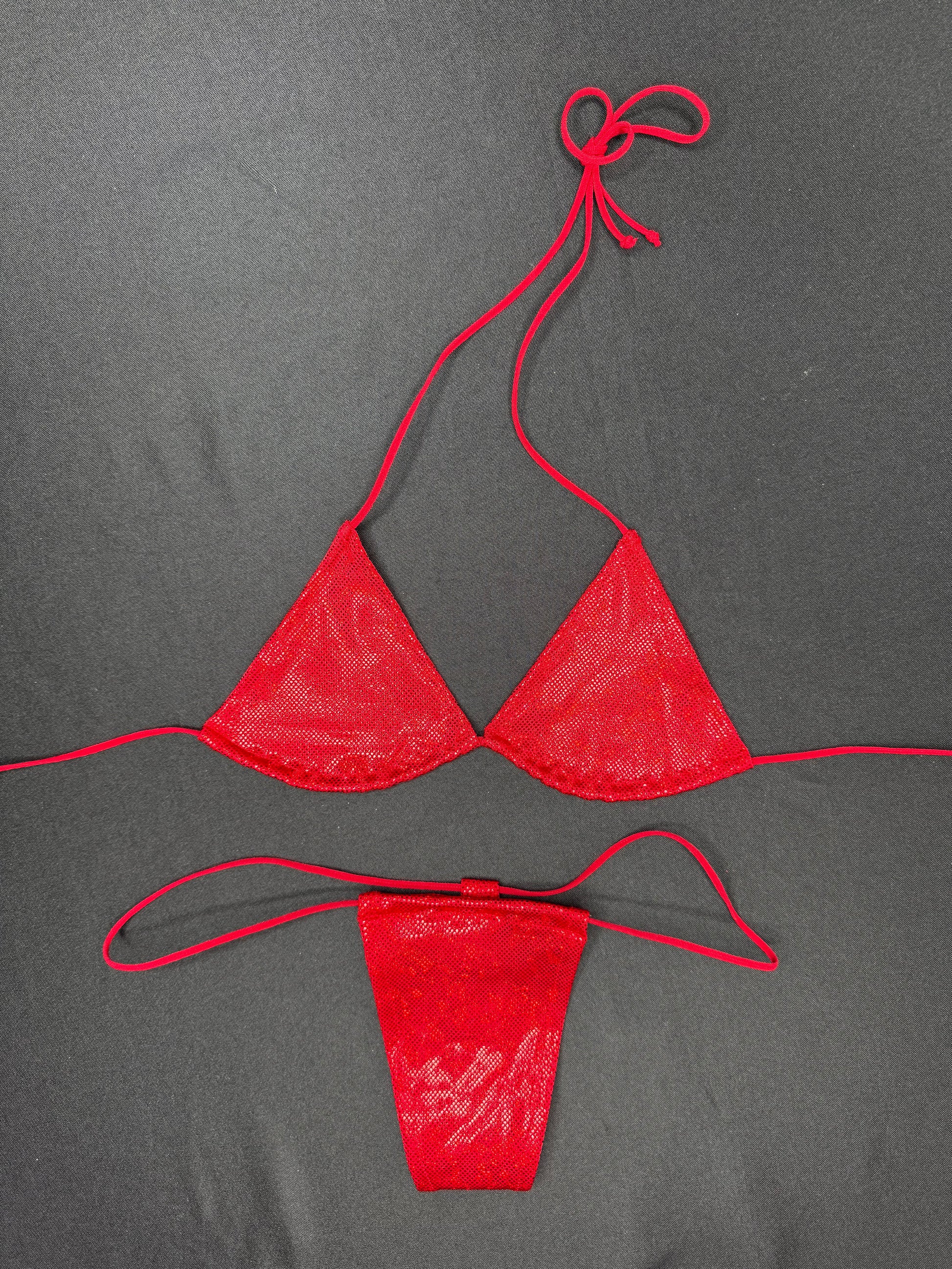 Red Micro Bikini Two-Piece Lingerie Outfit