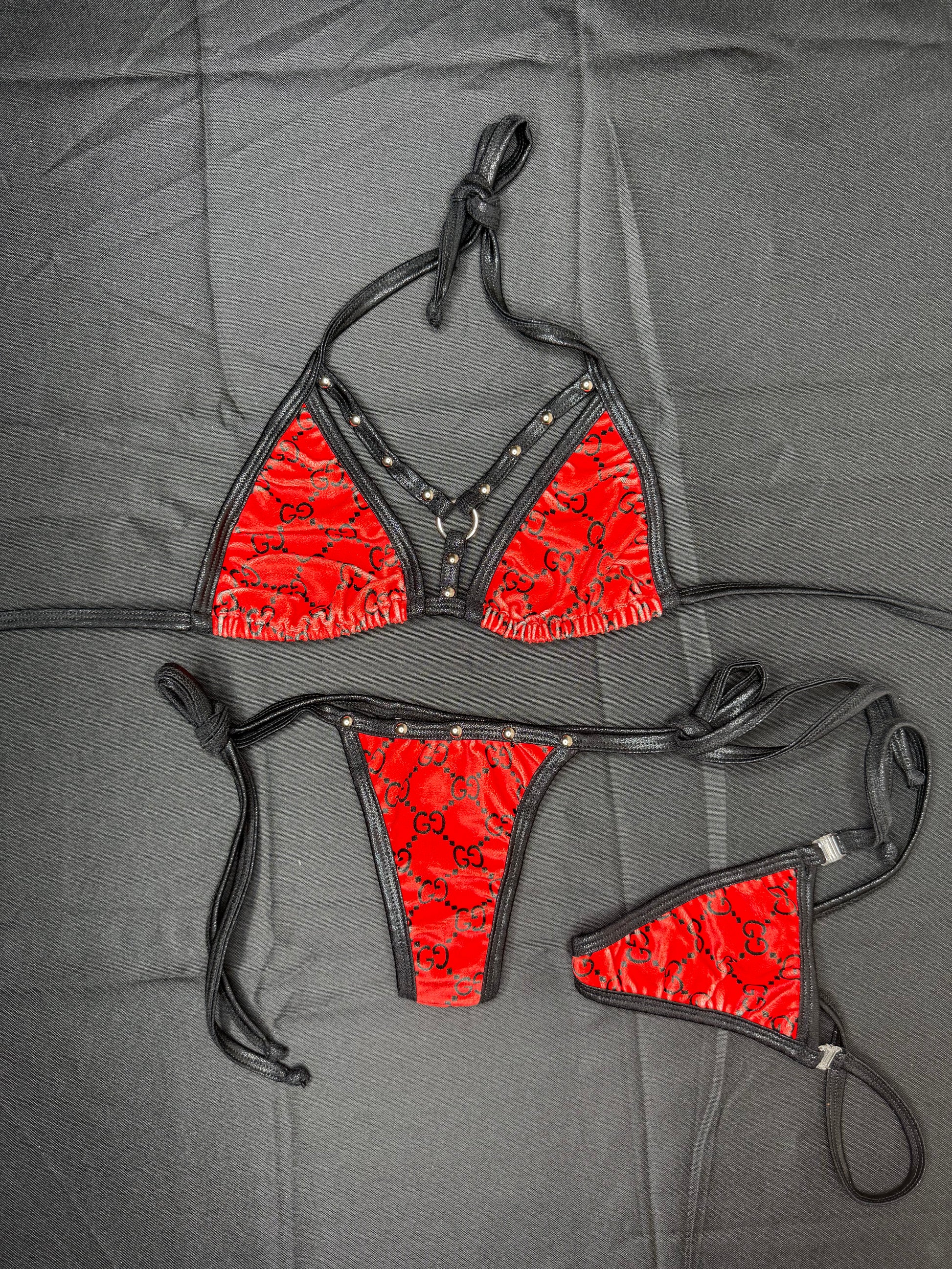Red VELVET Designer Two-Piece Bikini Lingerie Outfit