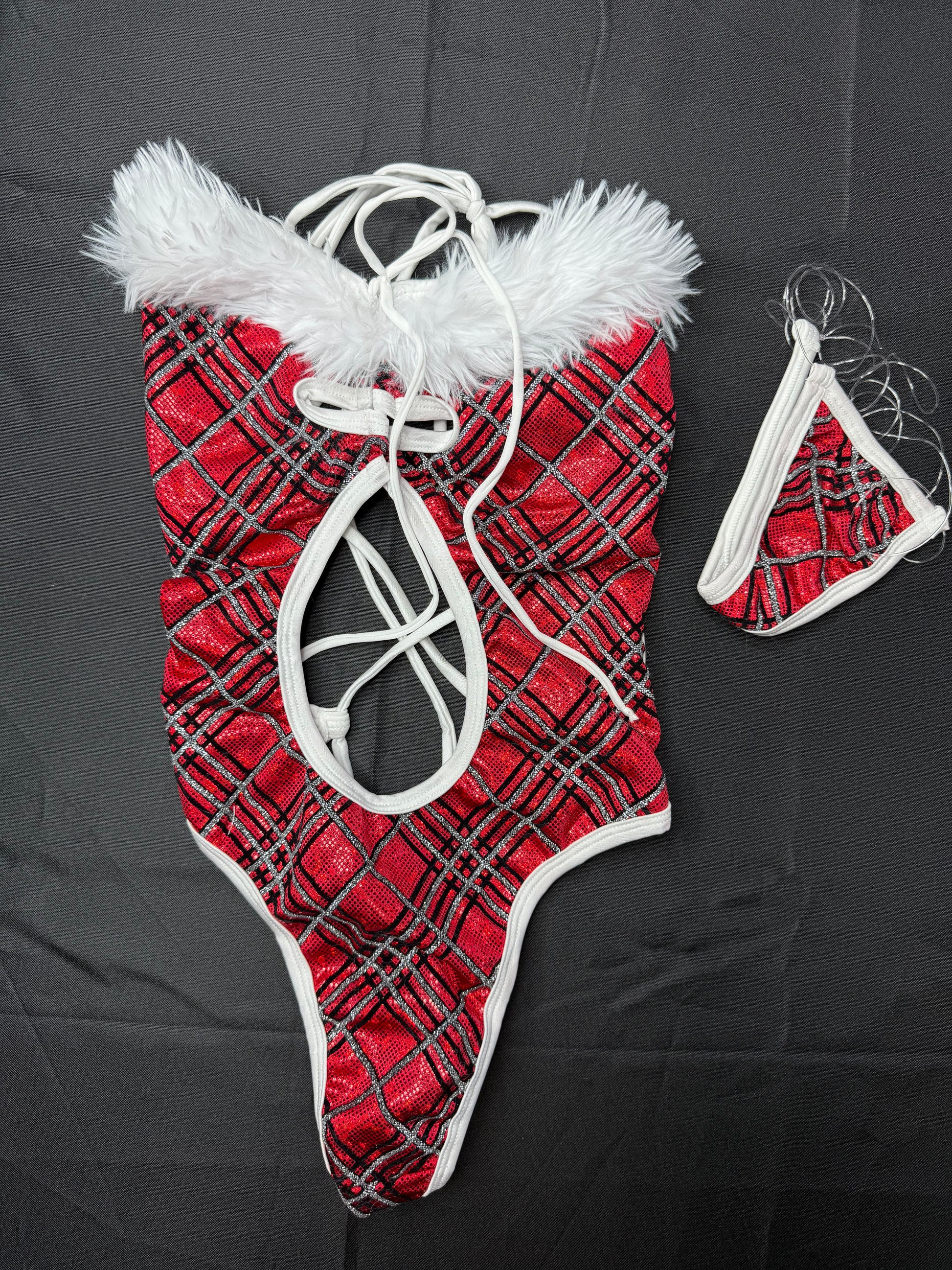 Red/White Fur One-Piece With Hat Christmas Lingerie Outfit