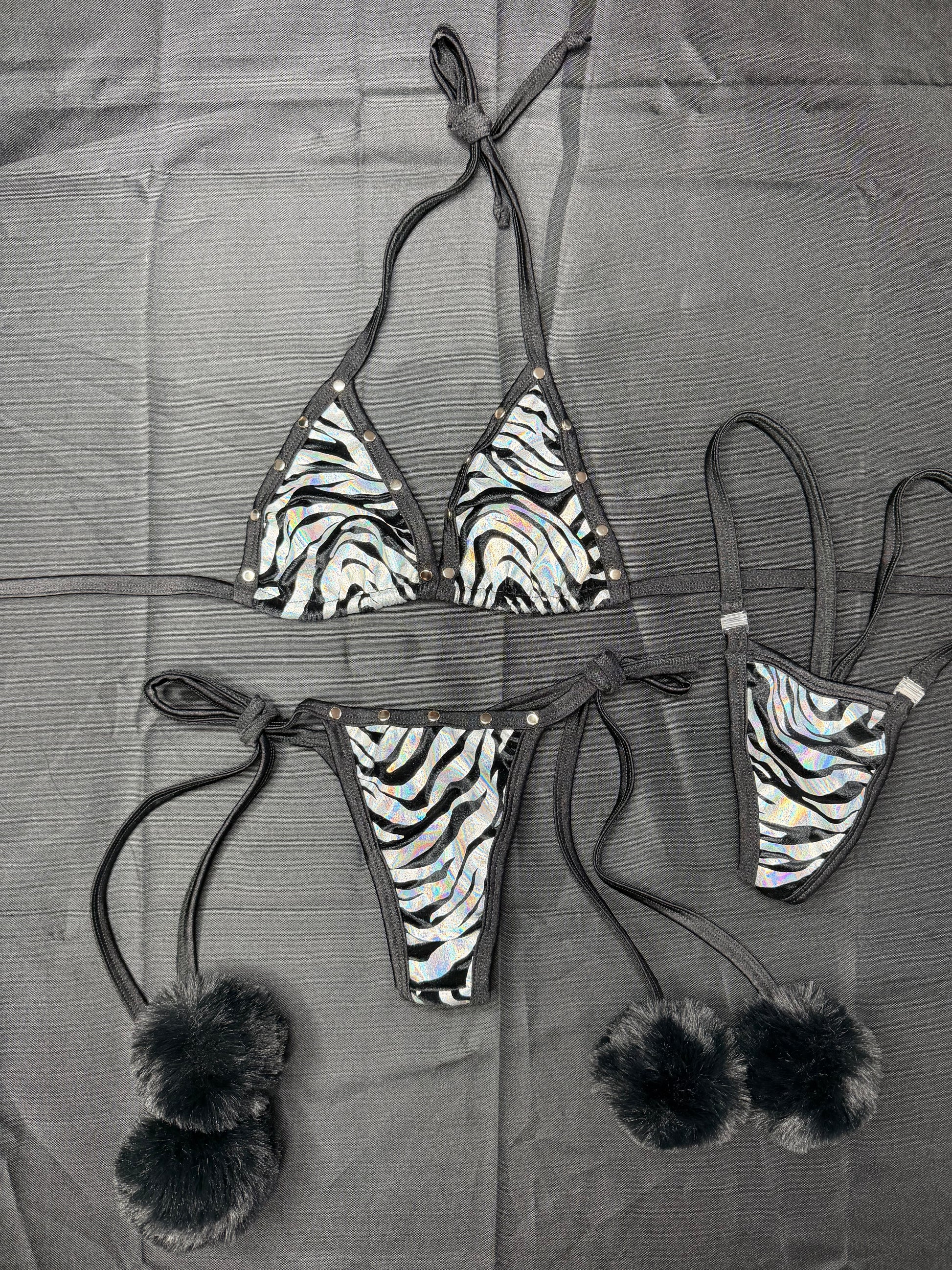 Silver Tiger Animal Print Spandex Two-Piece Bikini Lingerie Outfit