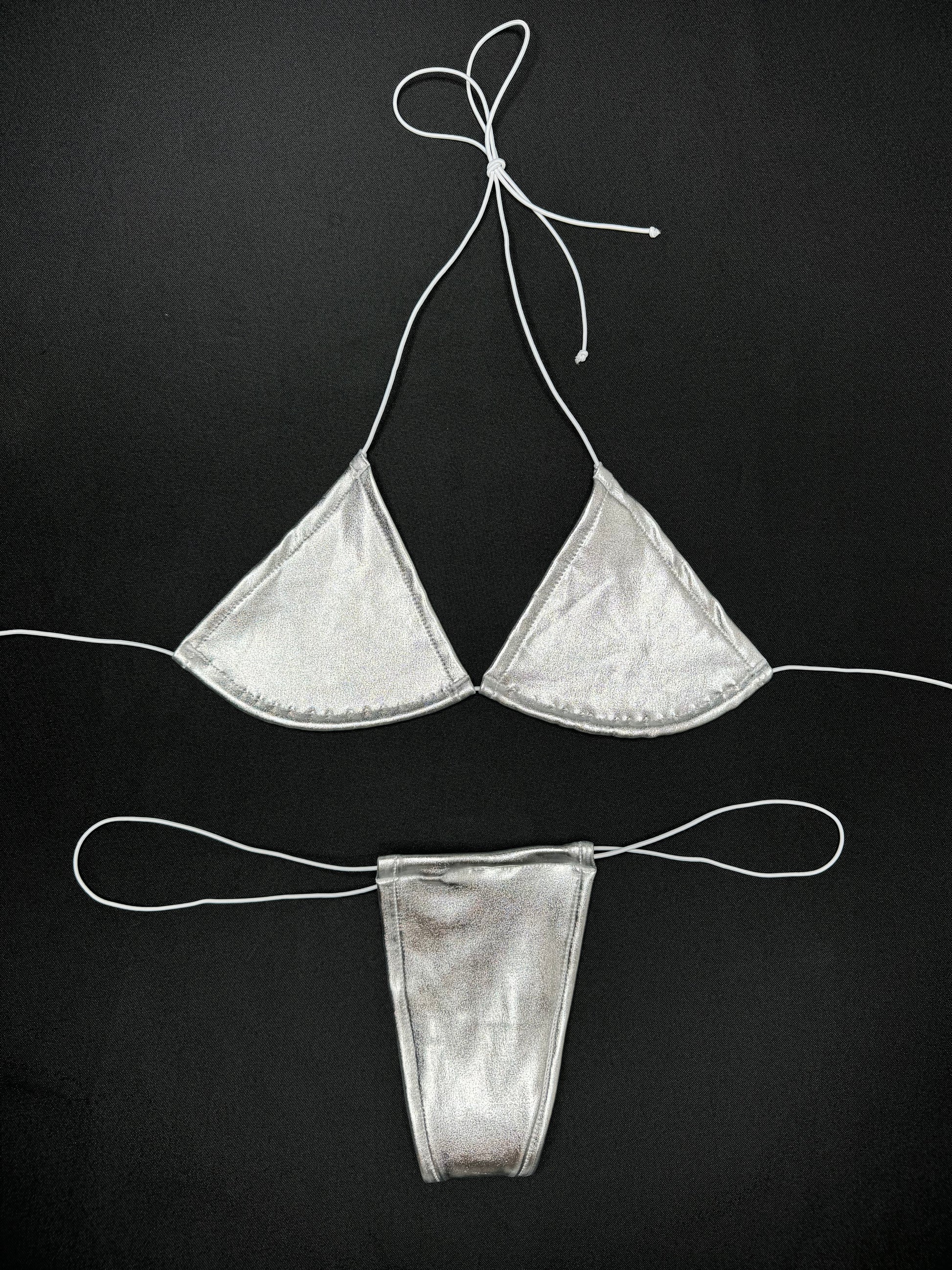 Silver Two-Piece Micro Bikini Lingerie Outfit