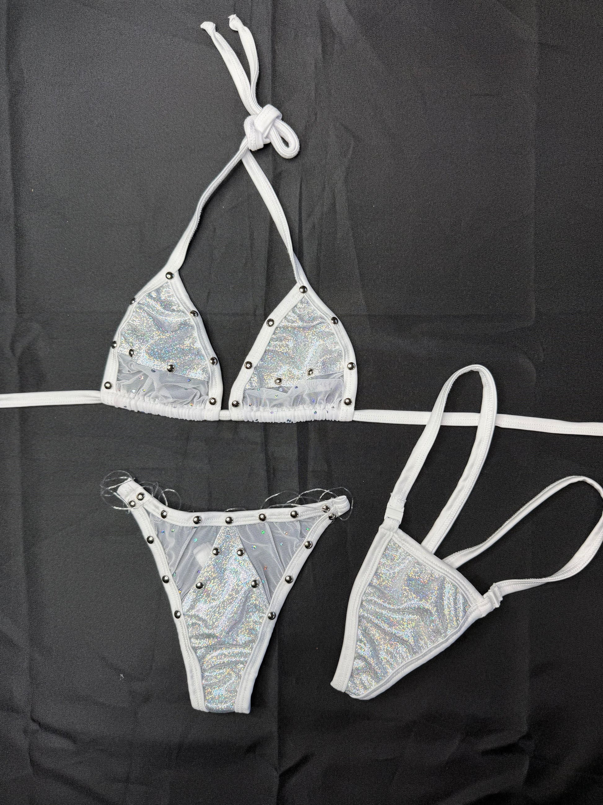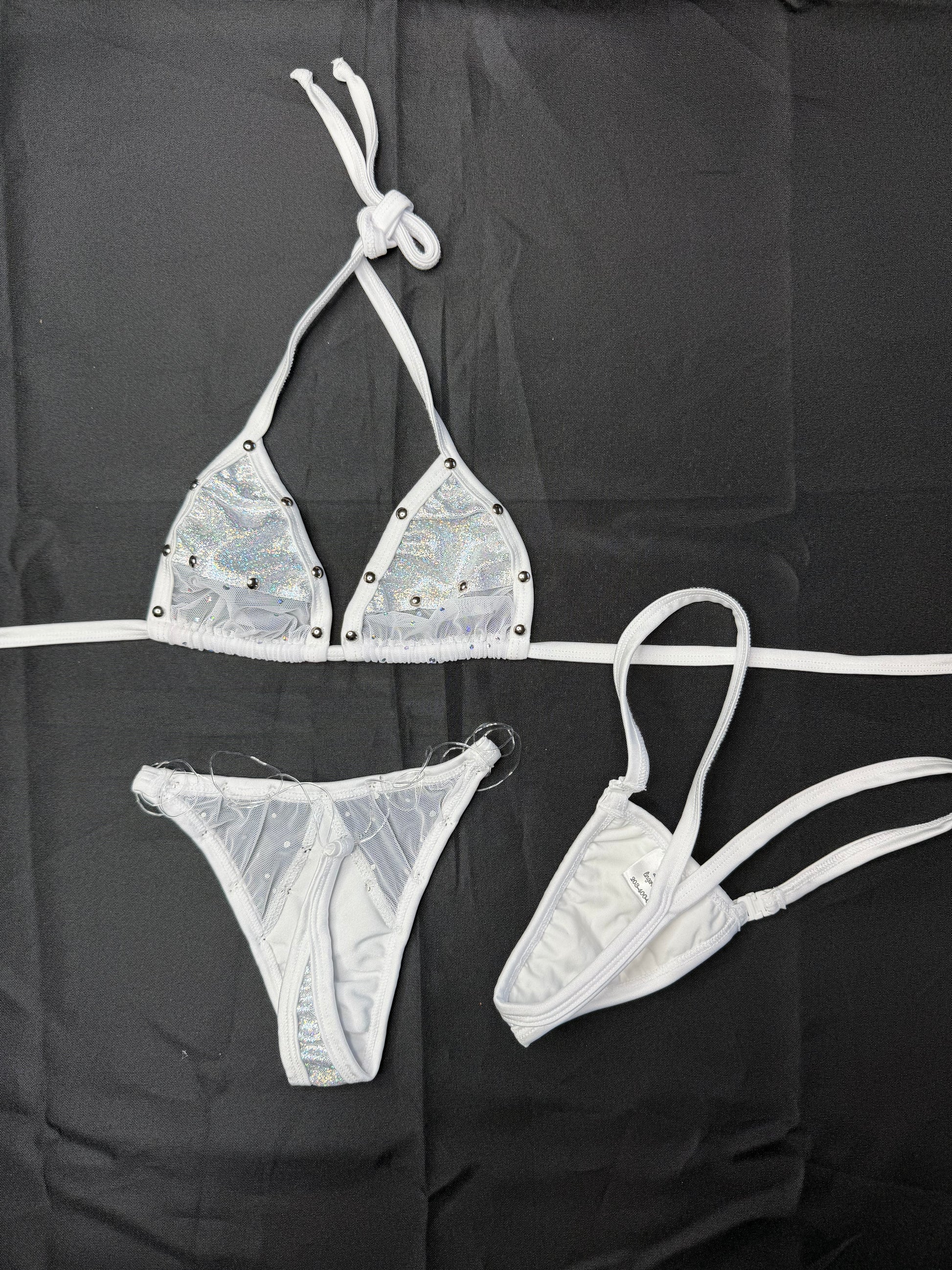 Silver/White Spandex Two-Piece Lingerie Outfit