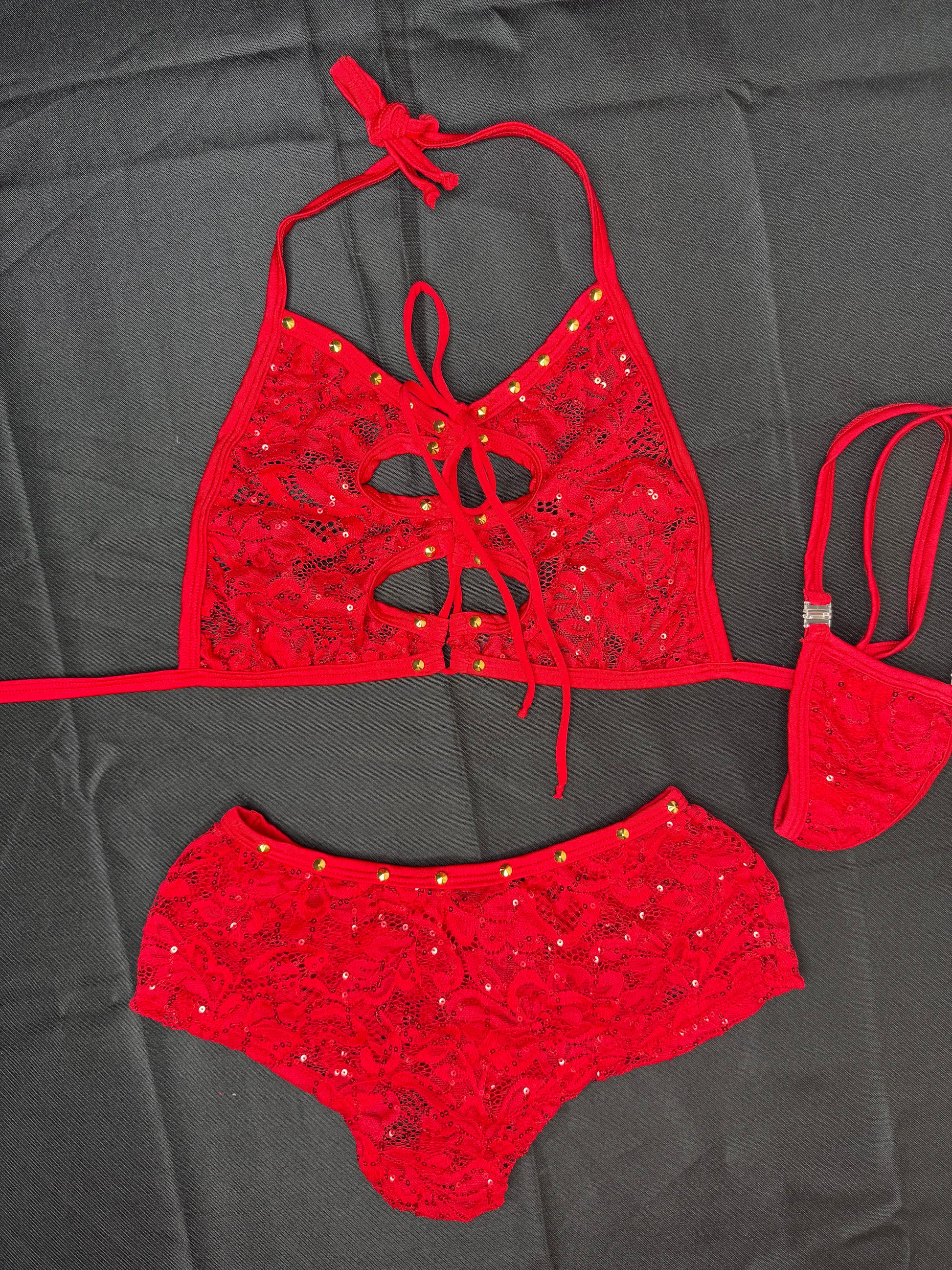 Sparkle Lace Two-Piece Shorts Lingerie Outfit