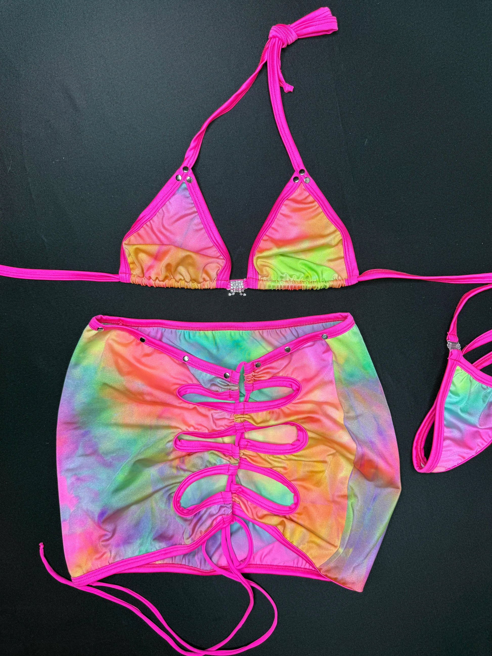 Tie Dye Spandex Two-Piece Skirt Lingerie Outfit