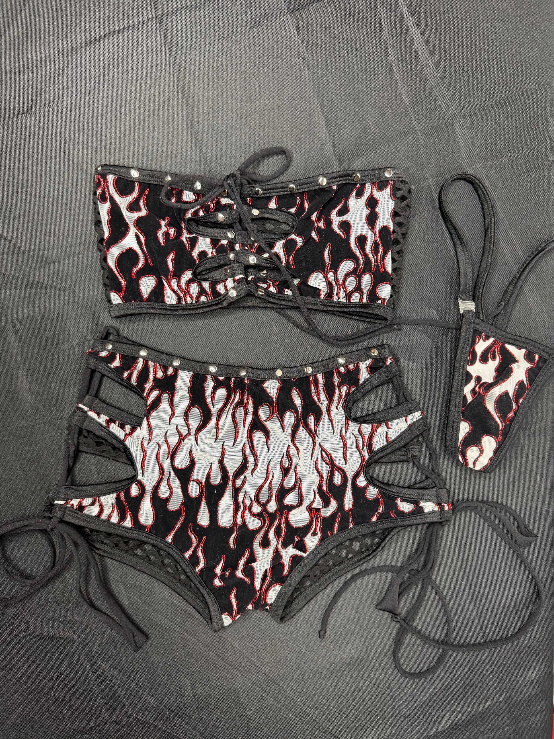 White Flame Mesh Tube Top/Shorts Two-Piece Lingerie Outfit