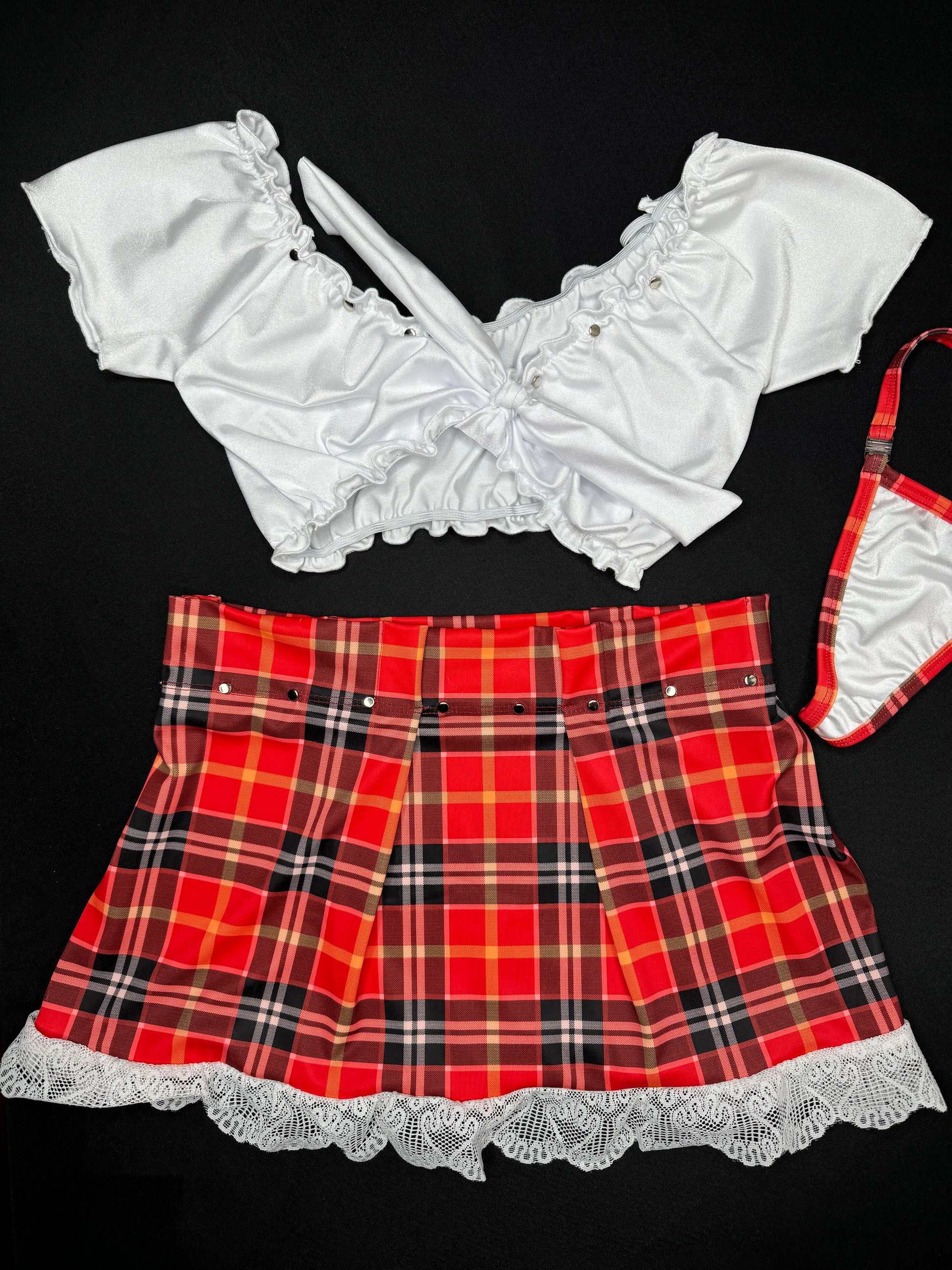 White/Red Plaid Two-Piece School Girl Lingerie Outfit