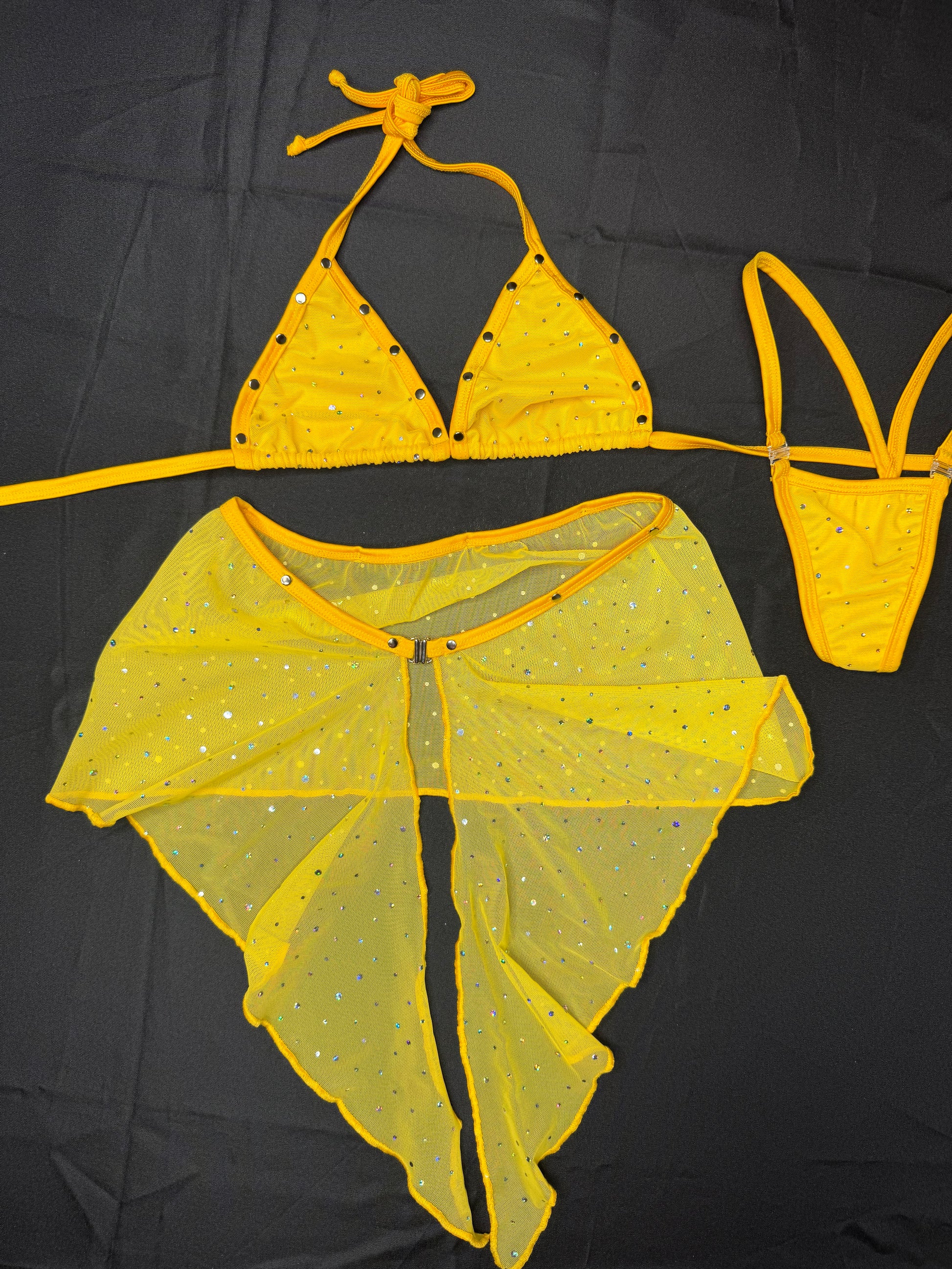 Yellow Mesh Bikini Top/Skirt Two-Piece Lingerie Outfit